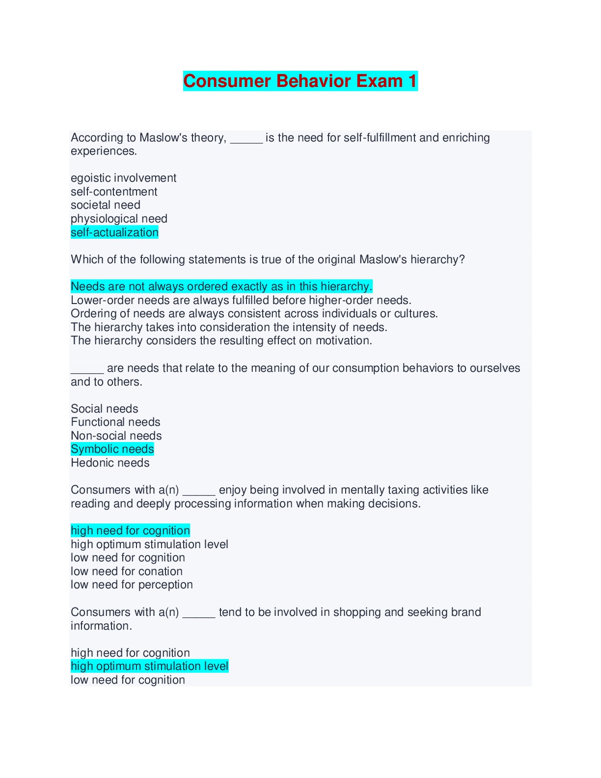 Psychology > EXAM > Consumer Behavior Final Exam | Questions with Verified Answers (All)