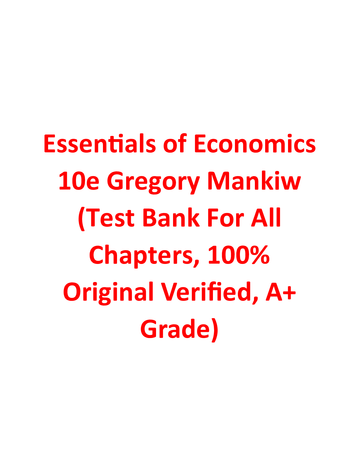 Instructor Manual With Test Bank For Essentials of Economics 10th Edition By Gregory Mankiw Instructor Manual With Test Bank For Essentials of Economics 10th Edition By Gregory Mankiw