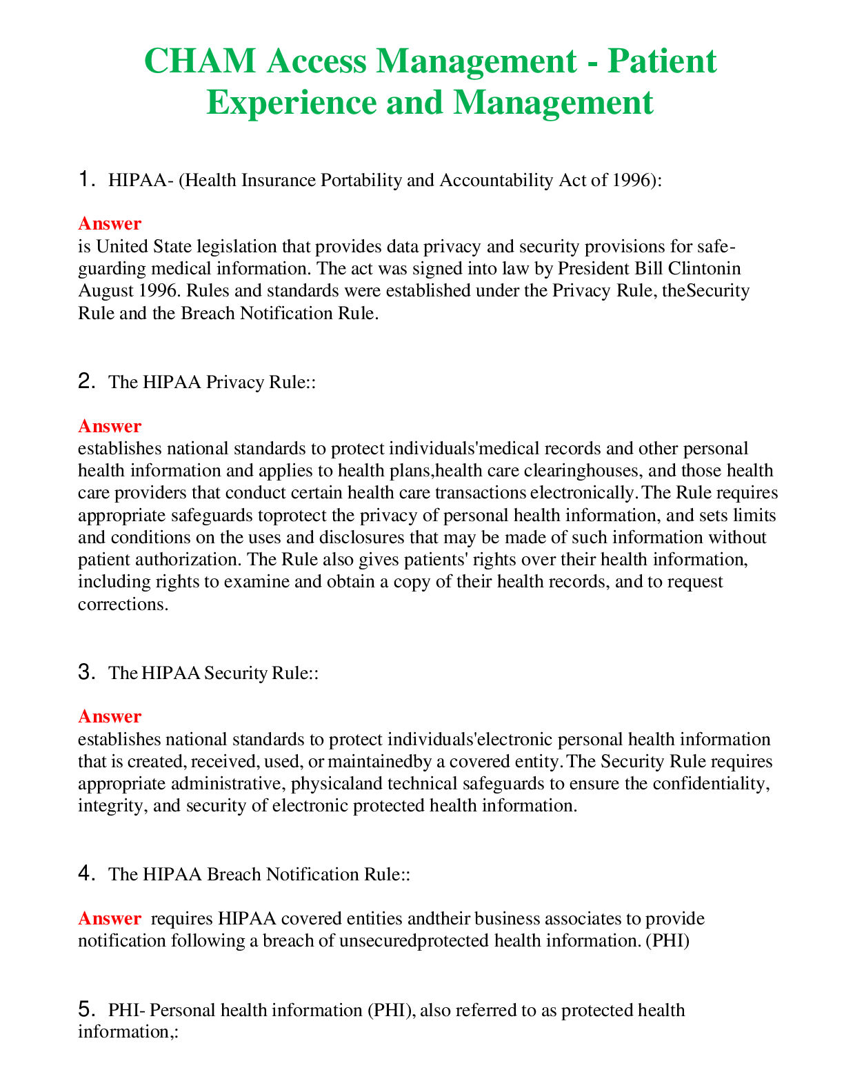 2024 Bundle CHAM ( STUDY GUIDE, Arrival - Patient and Family Experience, Access Management - Patient Experience and Management, Exam, Chapter 9,10, Test, Definitions ) Passed | A+ Rated Guide | New Fu...