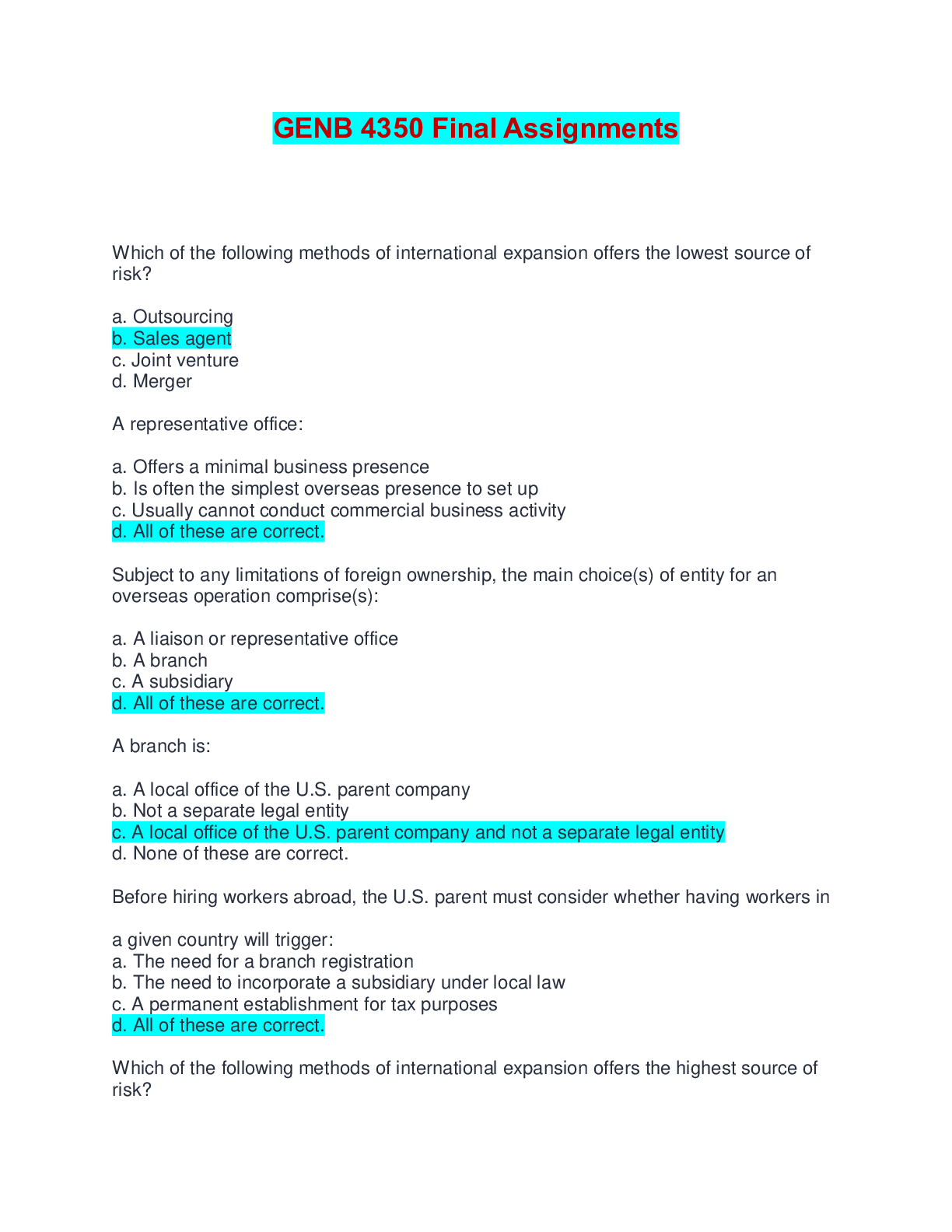 Business Law > EXAM > GENB 4350 Final Assignments | Complete Solutions (Verified) (All)