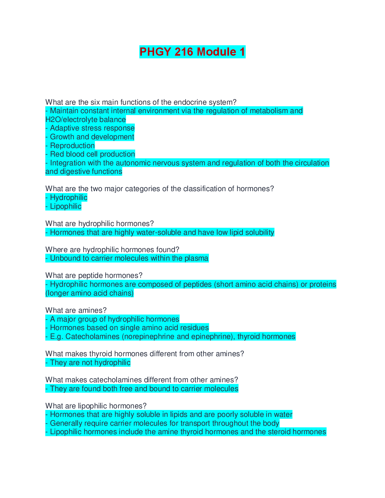 PHGY 216 MODULE 1-3 AND MIDTERM EXAM BUNDLE