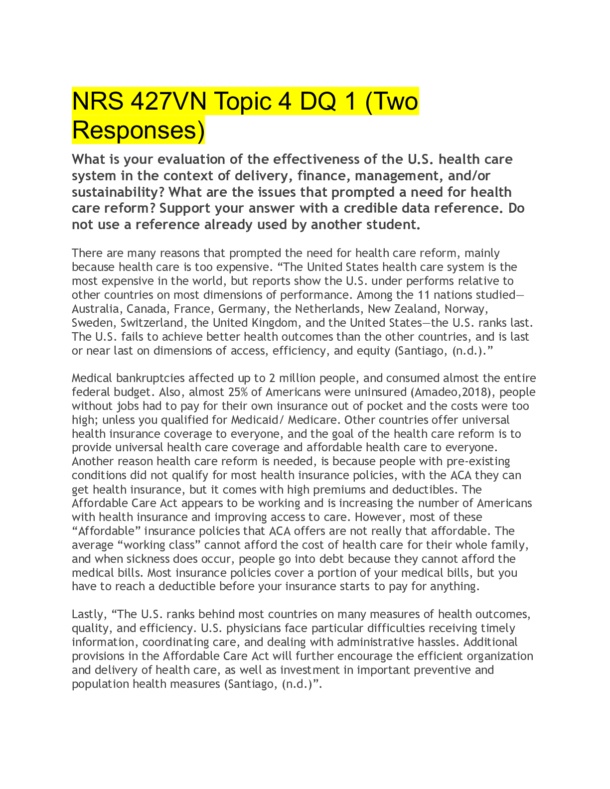NUR 513 Topic 4 - Discussion Question 1 And NUR 513 Topic 4 - Discussion Question 2