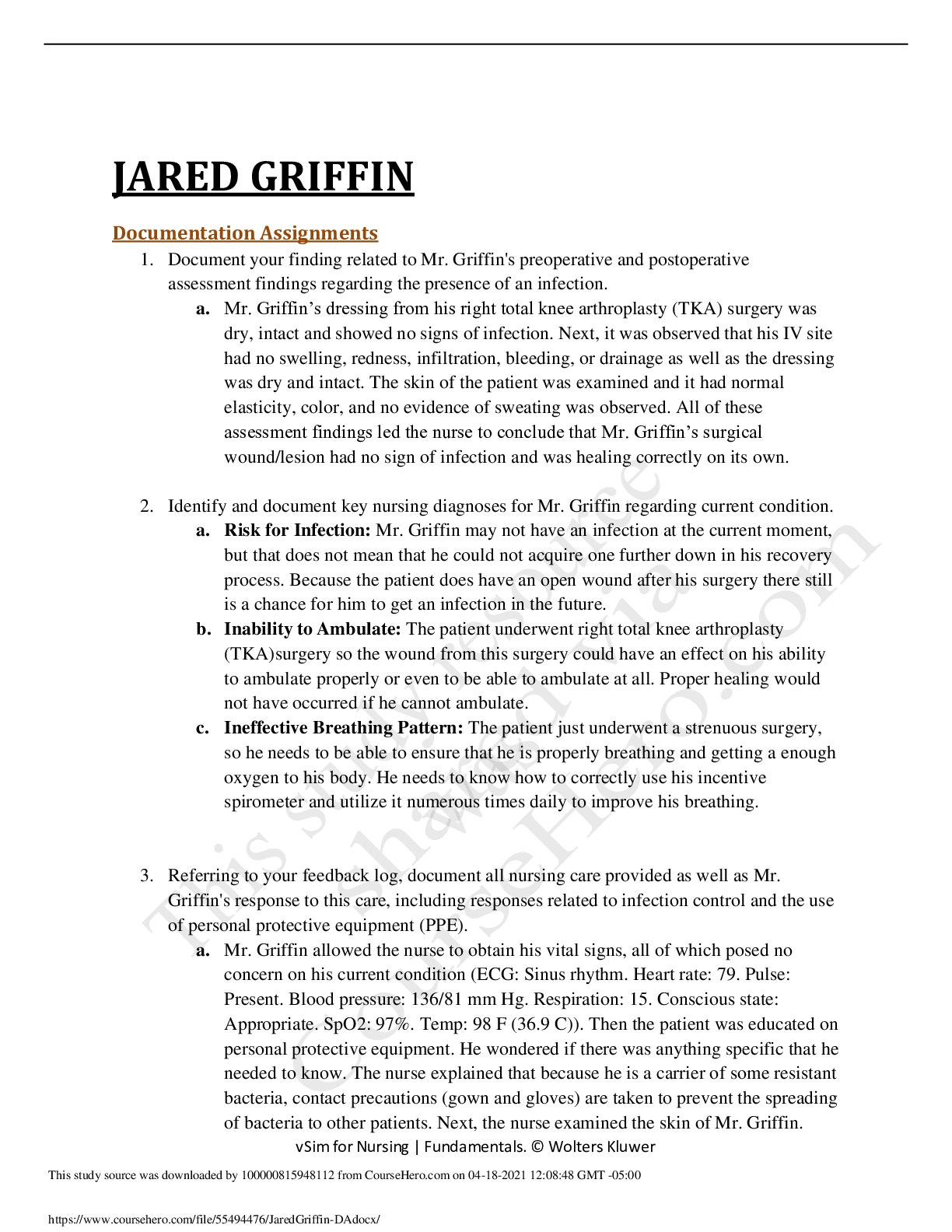 *NURSING > VSIM for NURSING FUNDAMENTALS > JaredGriffin_DA (All)