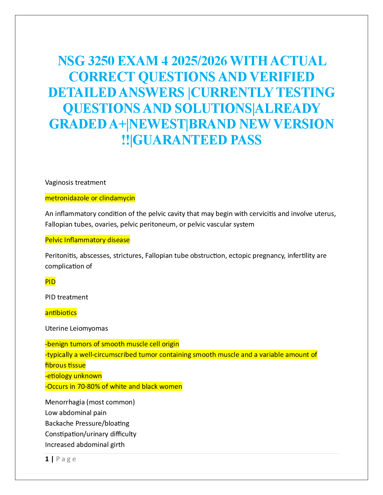 NSG 3250 EXAM 1,2,3 &4 2025/2026 WITH ACTUAL CORRECT QUESTIONS AND VERIFIED DETAILED ANSWERS |CURRENTLY TESTING QUESTIONS AND SOLUTIONS|ALREADY GRADED A+|NEWEST|BRAND NEW VERSION !!|GUARANTE...