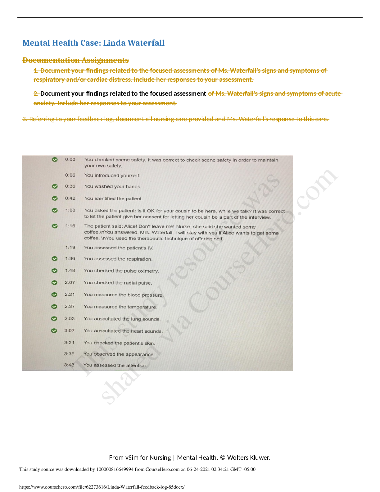 Mental Health Case Study Linda Waterfall- Feedback Log, ISBAR Activity and Documentation Assignments/Mental Health Case Study Linda Waterfall- Feedback Log, ISBAR Activity and Documentation Assignment...