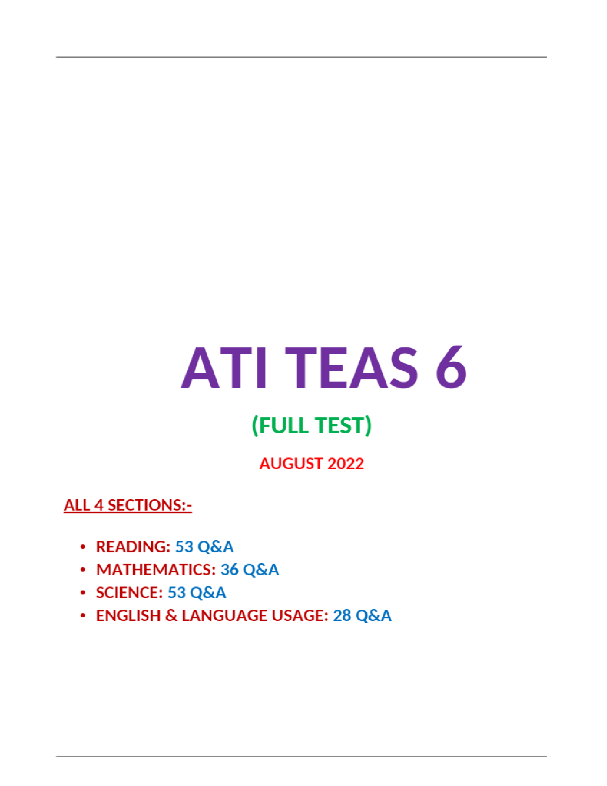 ATI TEAS 6 Practice| Comprehensive Bundle for Grade A+... [Show More]