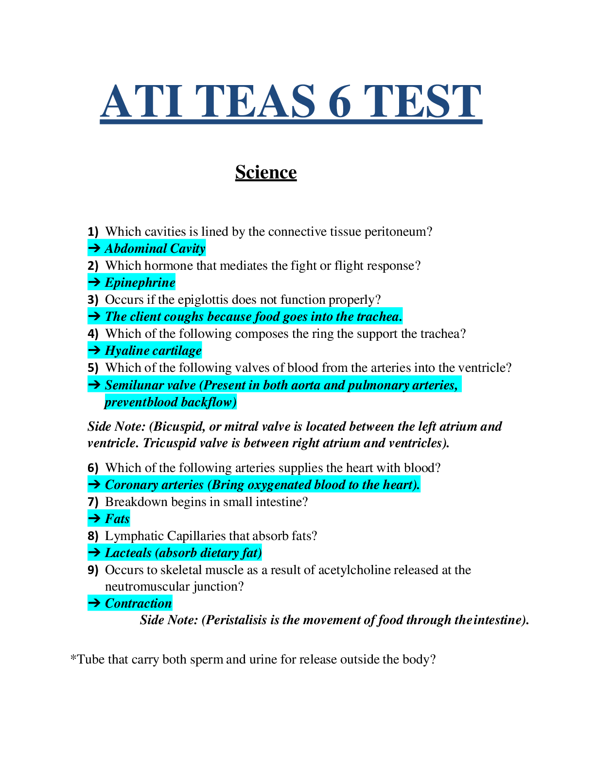 Biology> EXAM > Teas Test 6| Science| Ultimate Guide for Grade A+ (All)
