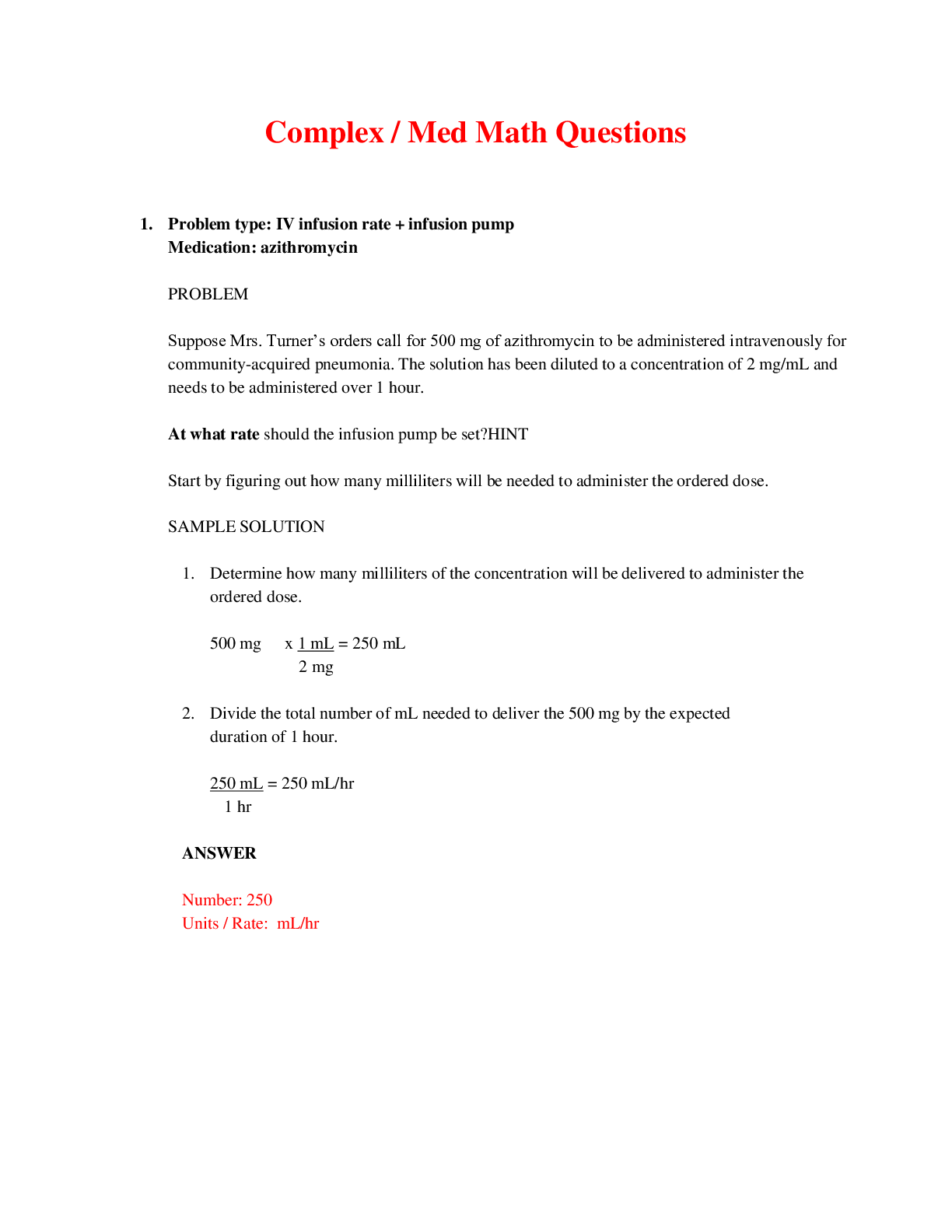Basic Intermediate and Complex MED MATH Bundle| Complete Questions and Correct Answers. Ultimate Guide for Your Assignments| Download Now.... [Show More]