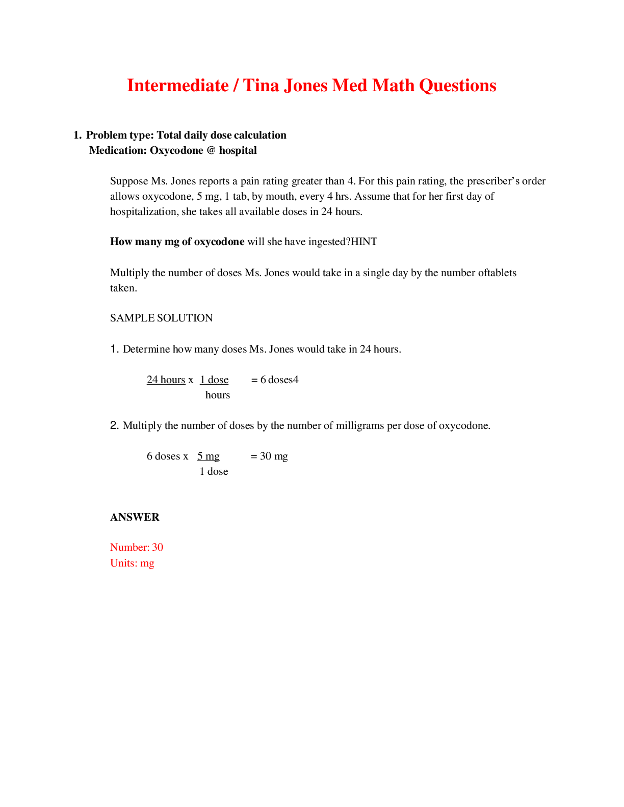 Intermediate / Tina Jones Med Math Questions & Answers| Ultimate Guide to Understand The Topic.