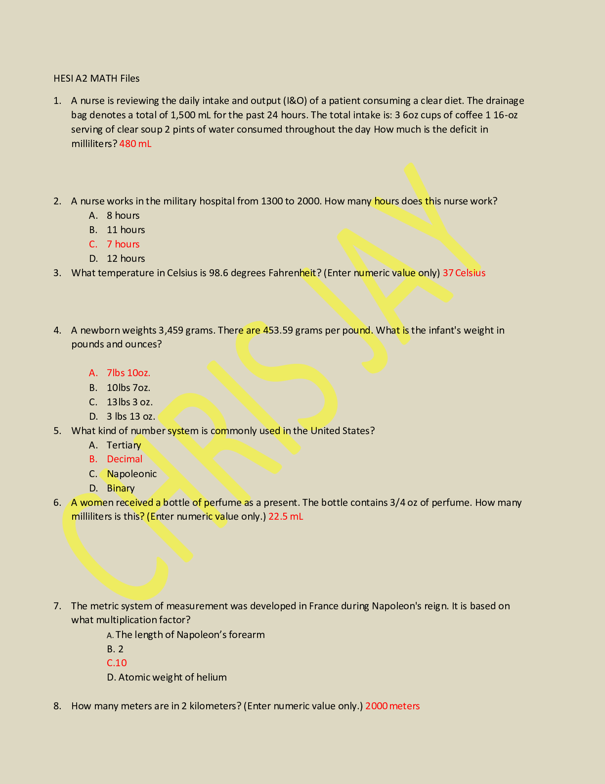 *NURSING> EXAM > HESI A2 MATH FILES-CHRISJAY FILES (All)