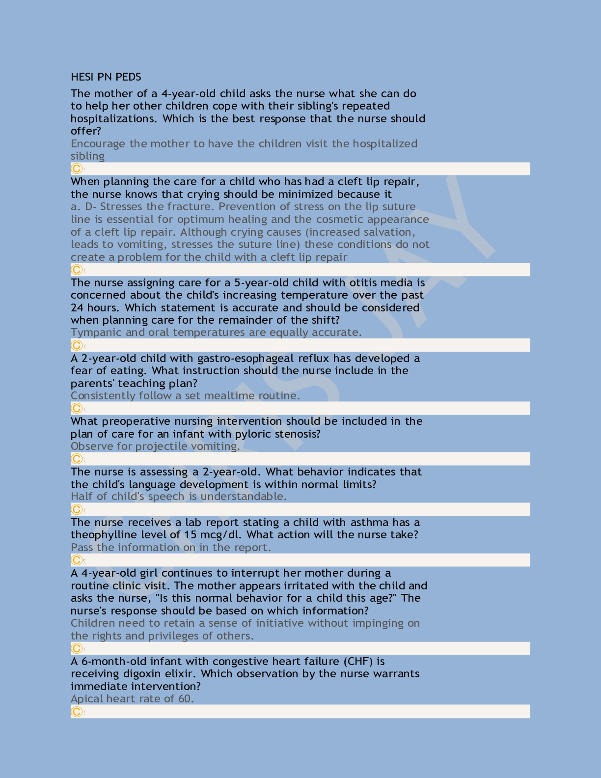 *NURSING> EXAM > HESI PN PEDRIATICS 2021 (All)