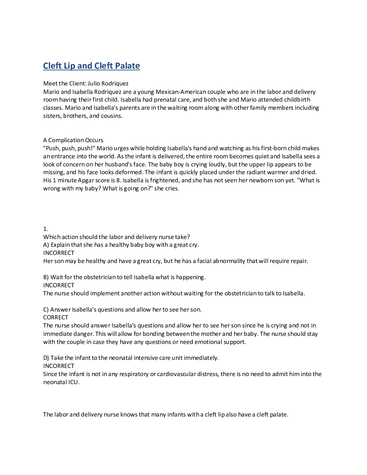 NURS 649 Cleft Lip and Cleft Palate HESI/NURS 649 Cleft Lip and Cleft Palate HESI