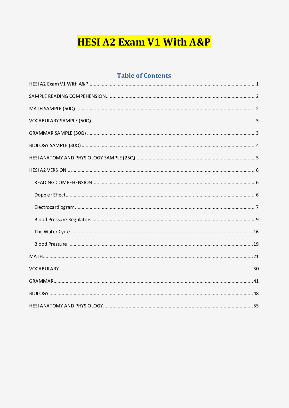 HESI A2 (READING,GRAMMAR,MATH,BIOLOGY & ANATOMY AND PHYSIOLOGY 2021.2022)