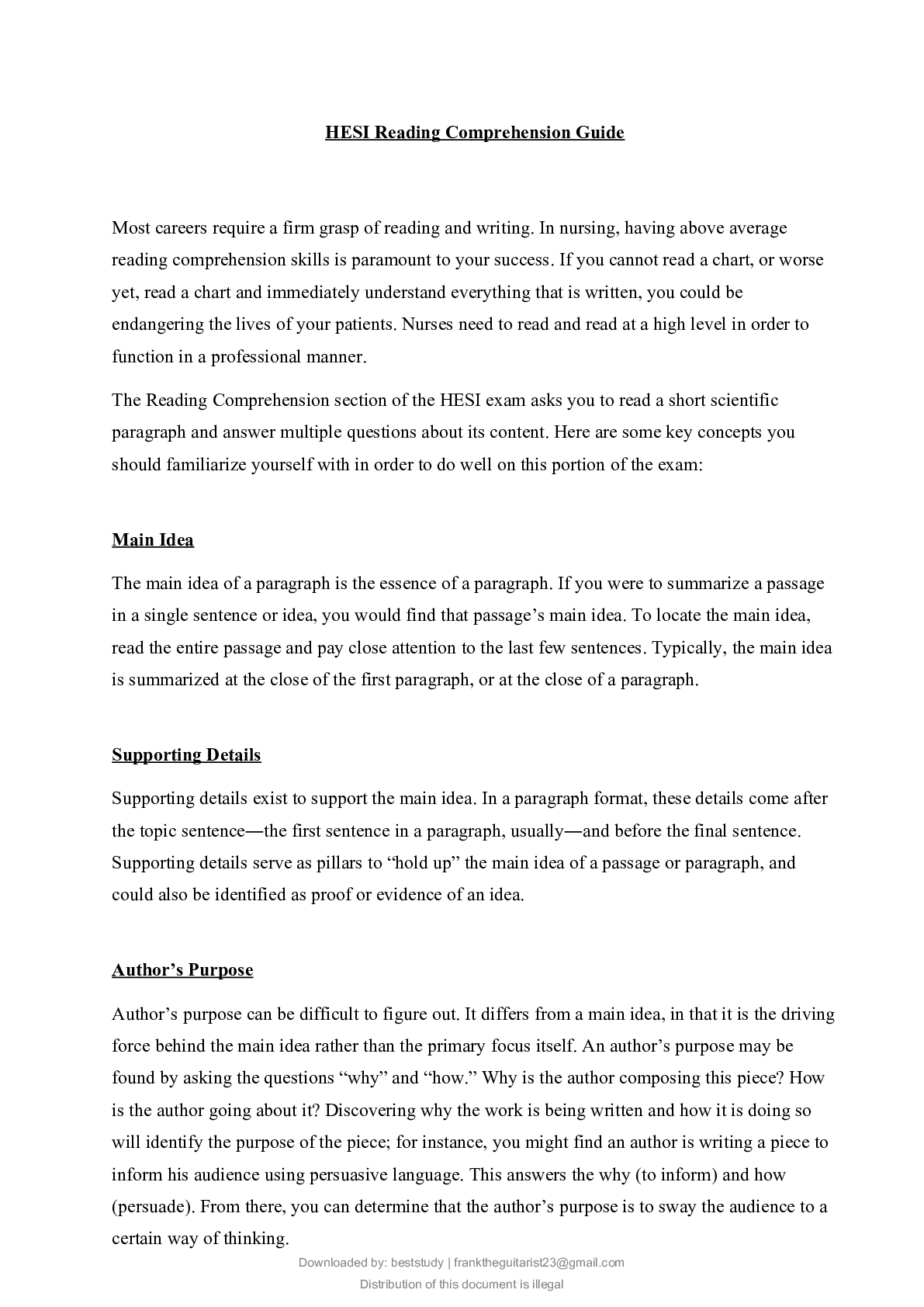 HESI Reading Comprehension Guide