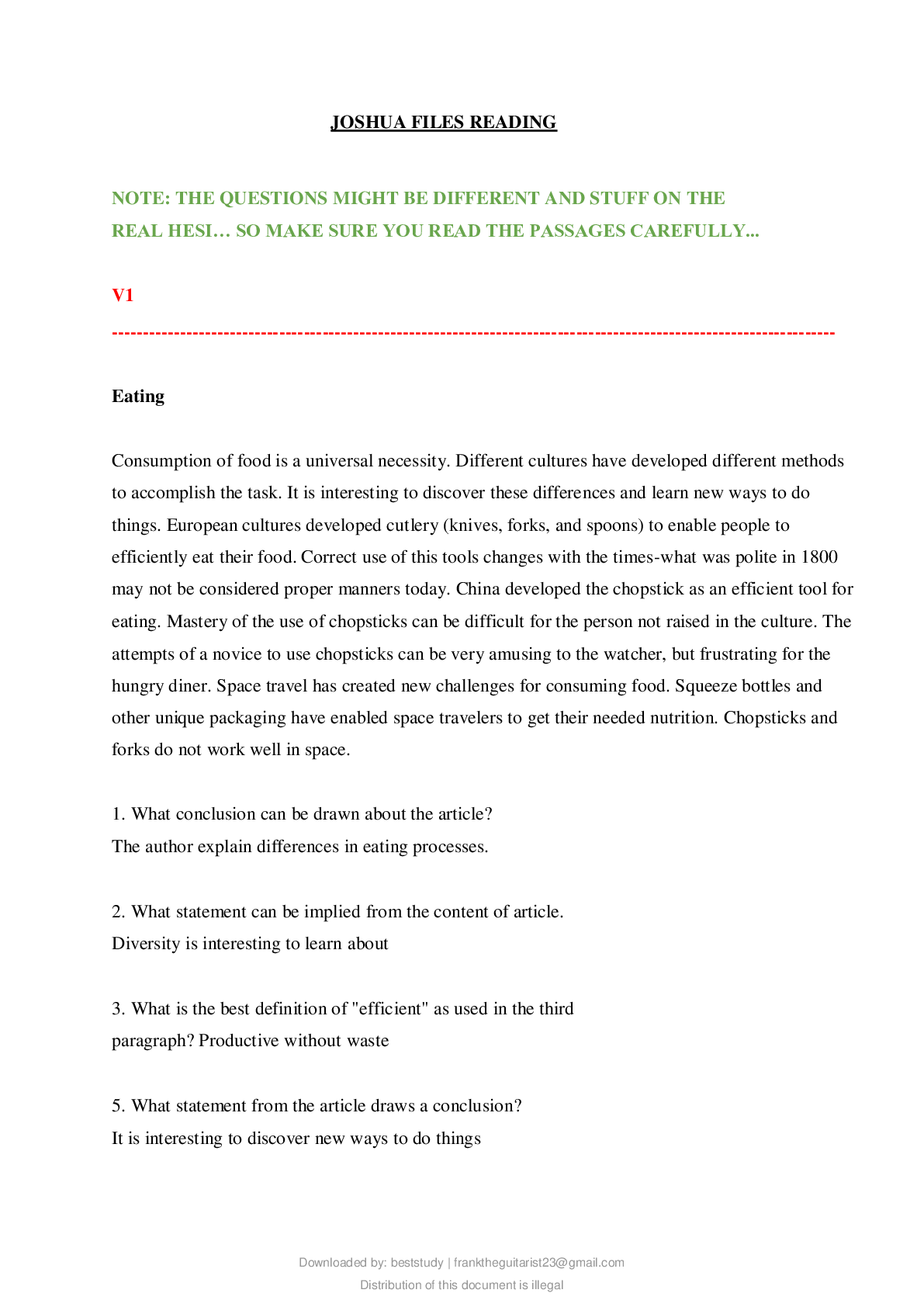 HESI Reading Comprehension Exam Questions and Answers