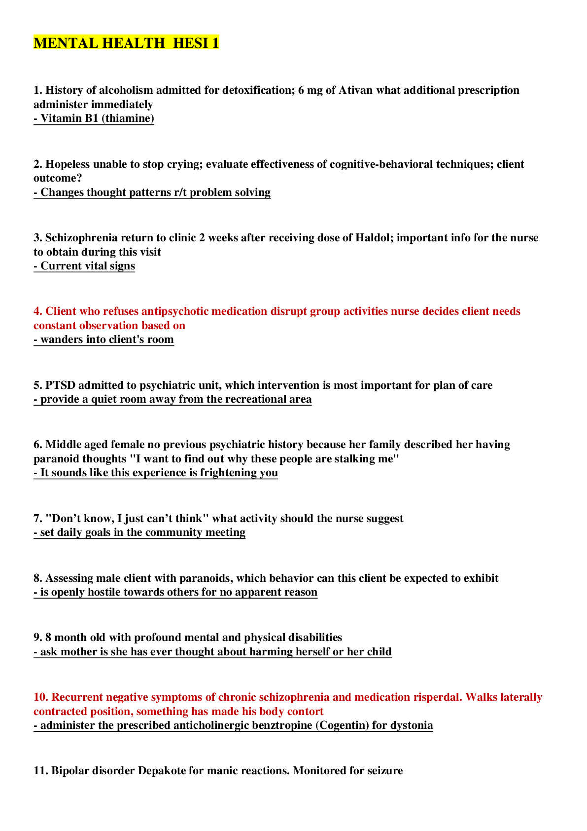 *NURSING> HESI > Mental Health HESI 7 (All)