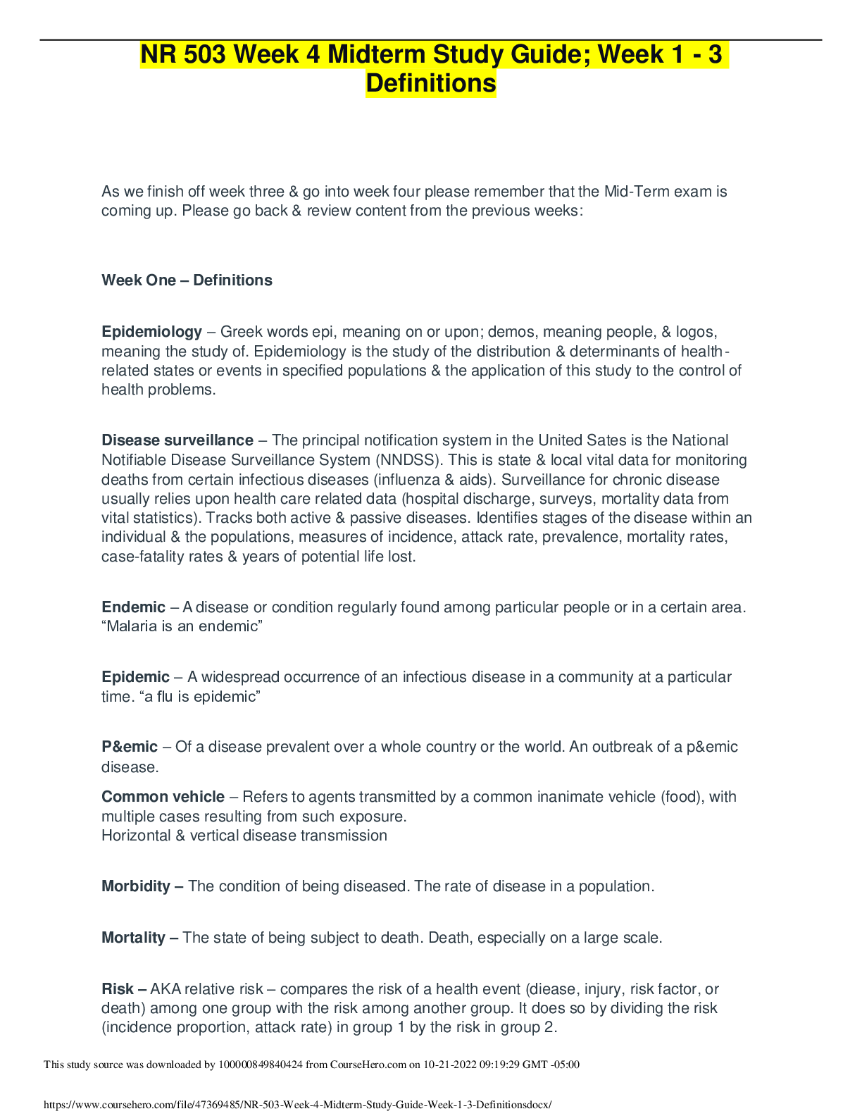 *NURSING> STUDY GUIDE > NR 503 Week 4 Midterm Definitions (Week 1-3) (All)