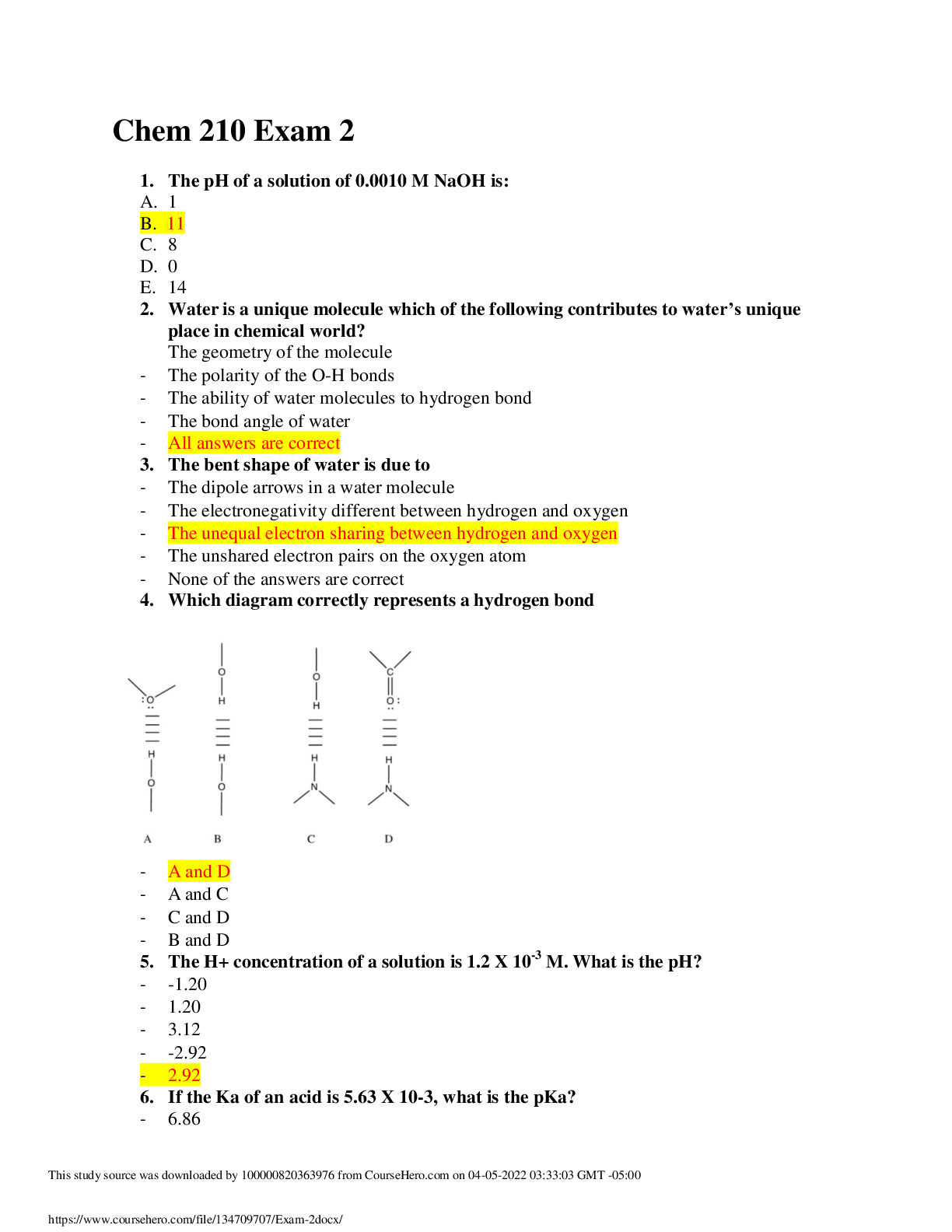 Portage Learning Chem 210 Test 6| Complete SolutionsPortage Learning Chem 210 Test 6| Complete SolutionsPortage Learning Chem 210 Test 6| Complete SolutionsPortage Learning Chem 210 Test 6| Complete S...