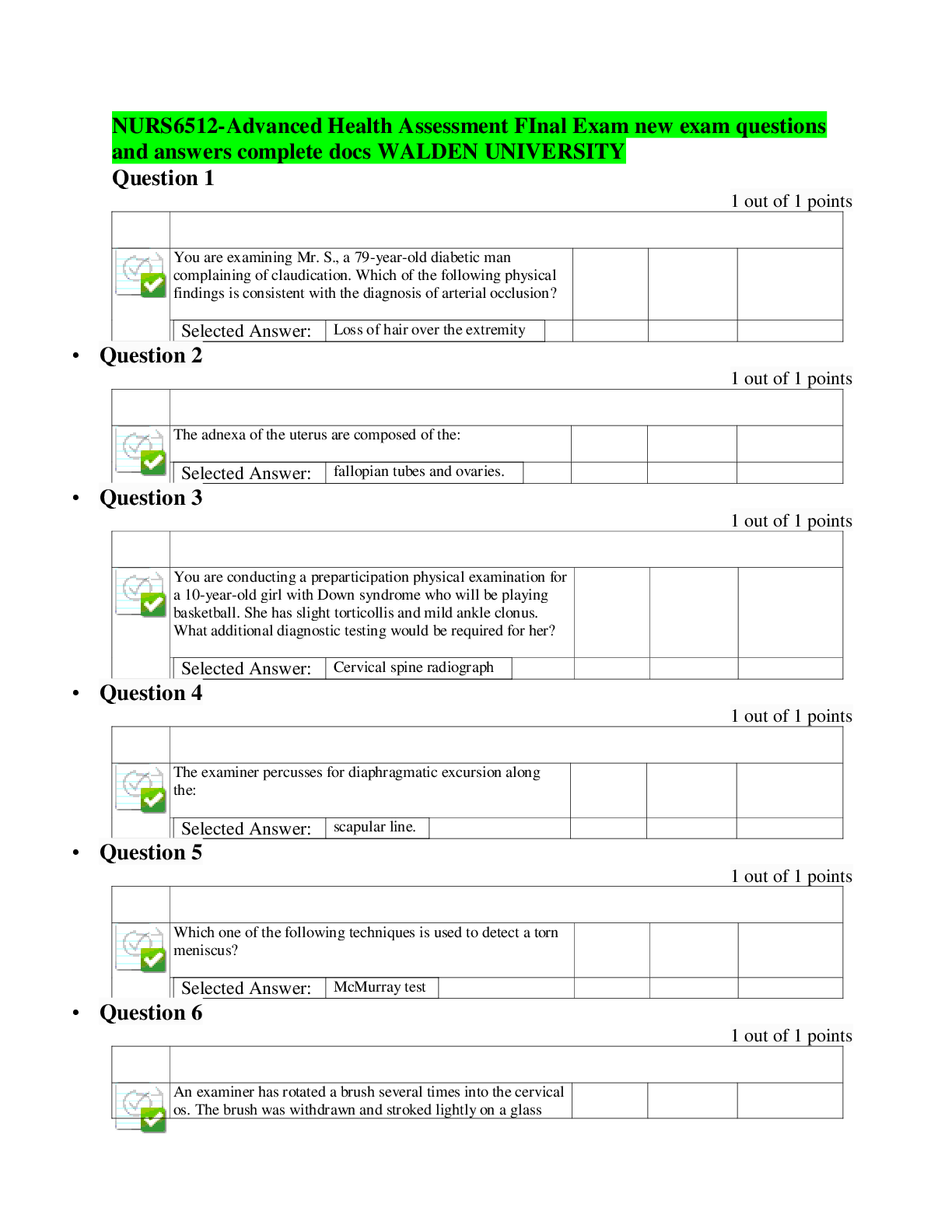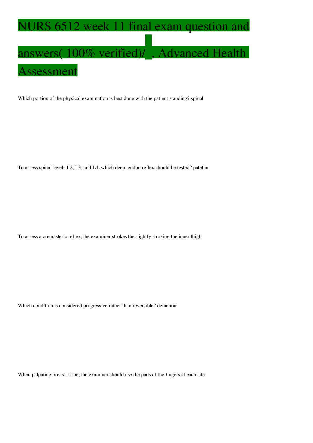 NURS6512-Advanced Health Assessment FInal Exam new exam questions and answers complete docs WALDEN UNIVERSITY