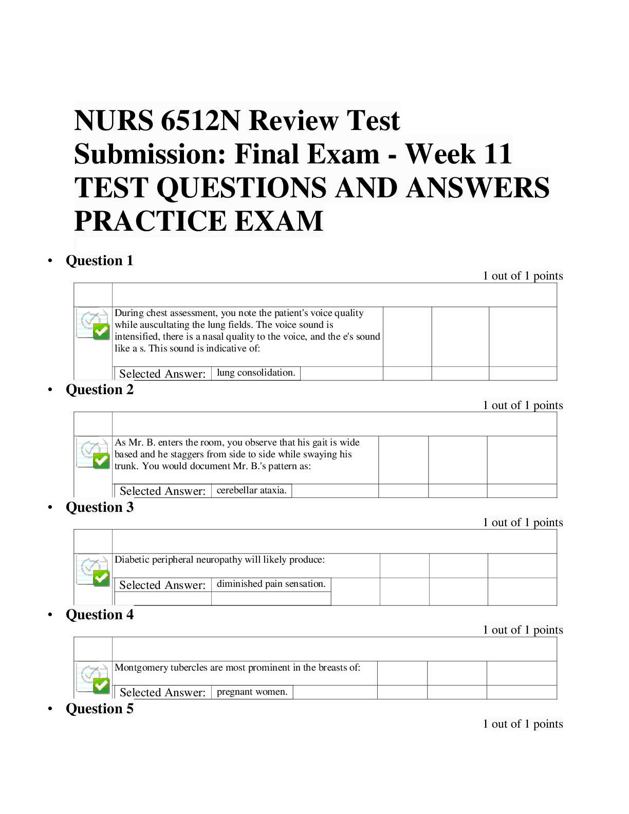 NURS 6512N Review Test Submission: Final Exam - Week 11 TEST QUESTIONS AND ANSWERS PRACTICE EXAM