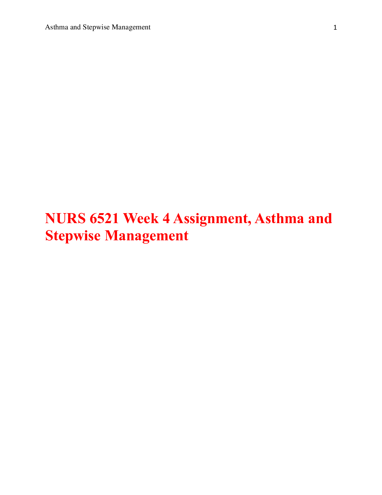 *NURSING> ESSAY > NURS 6521 Week 4 Assignment, Asthma and Stepwise Management (All)