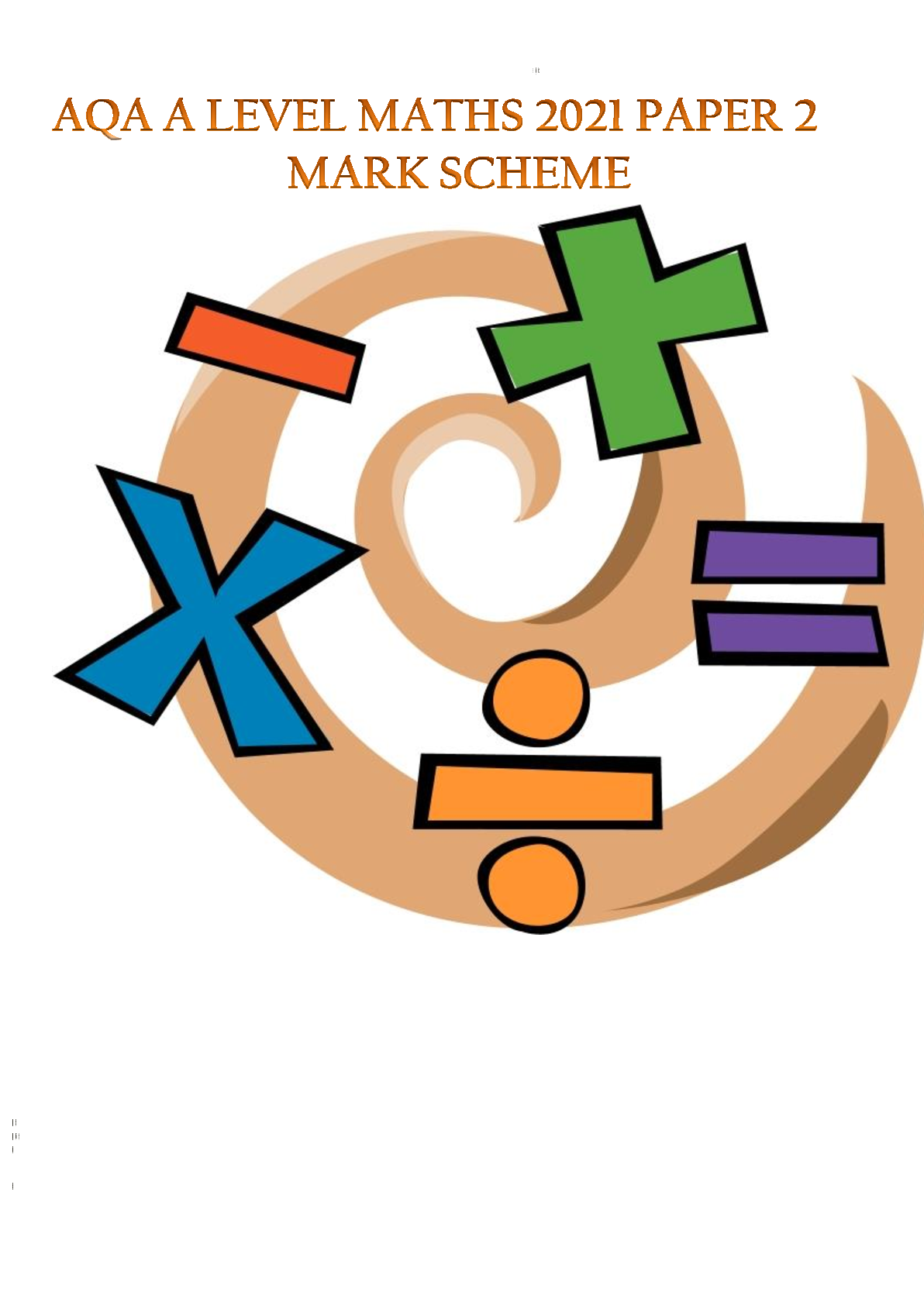 Bundle > AQA A-level MATHEMATICS Paper 2 QP 2021 & AQA A-level MATHEMATICS 7357/2 Paper 2 Mark scheme June 2021