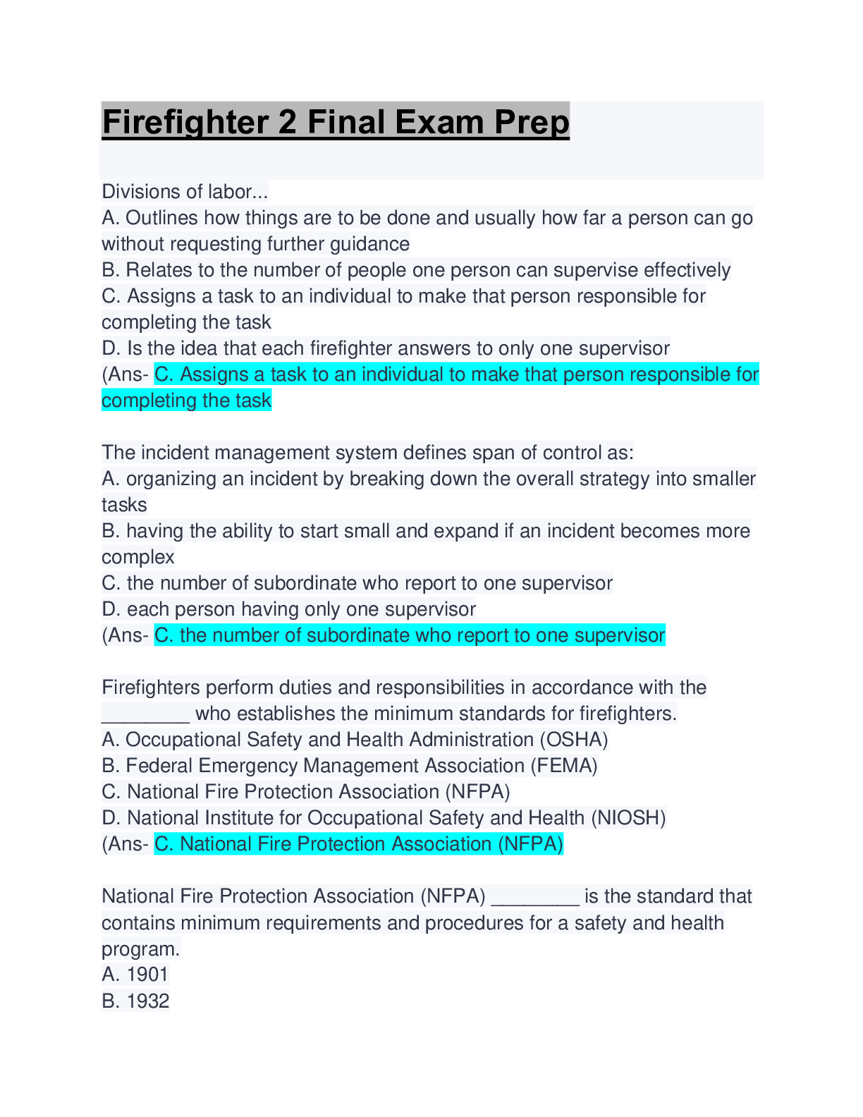 Firefighter I & II Exam Prep Bundle... [Show More]