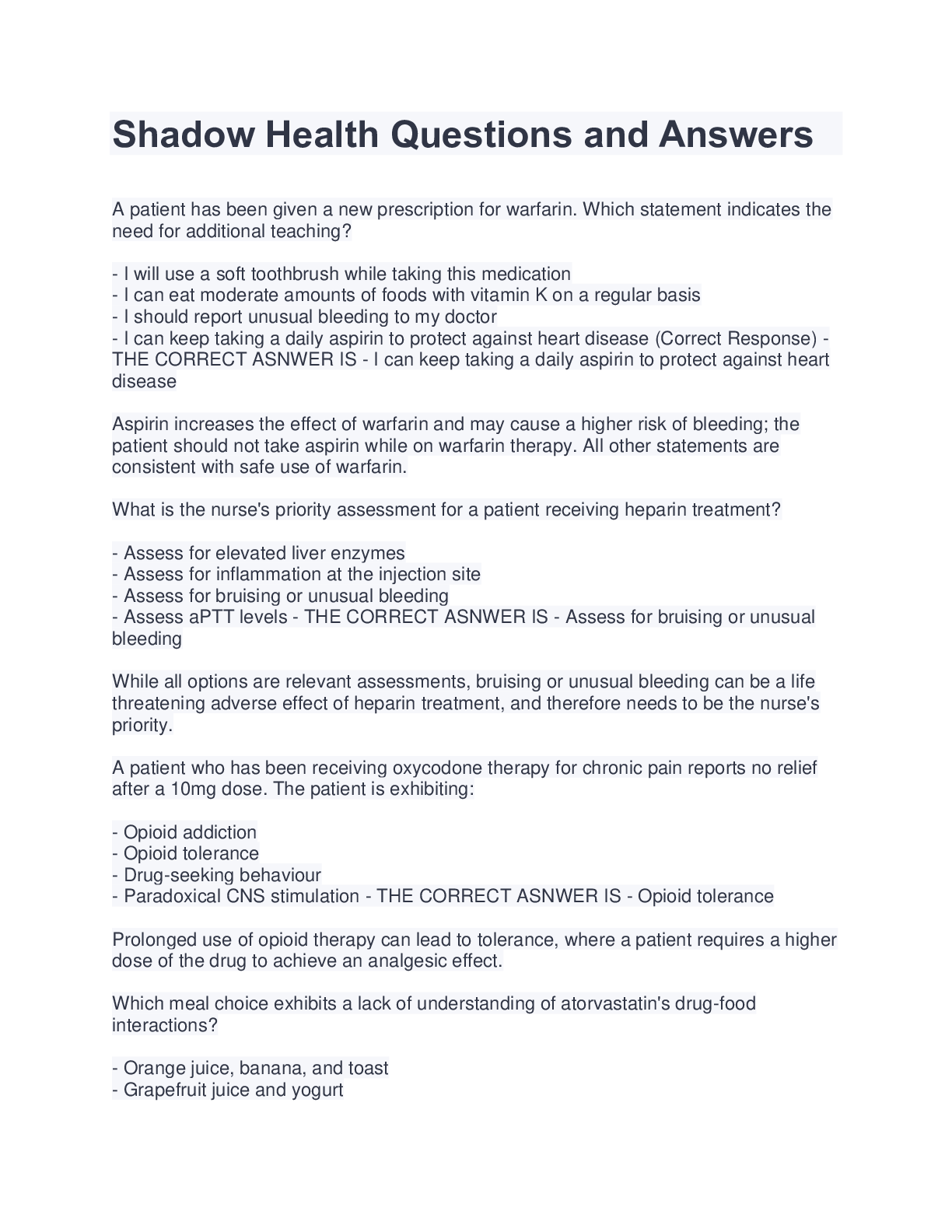 Shadow Health Questions and Answers (Latest 2022/2023) All answers Correct