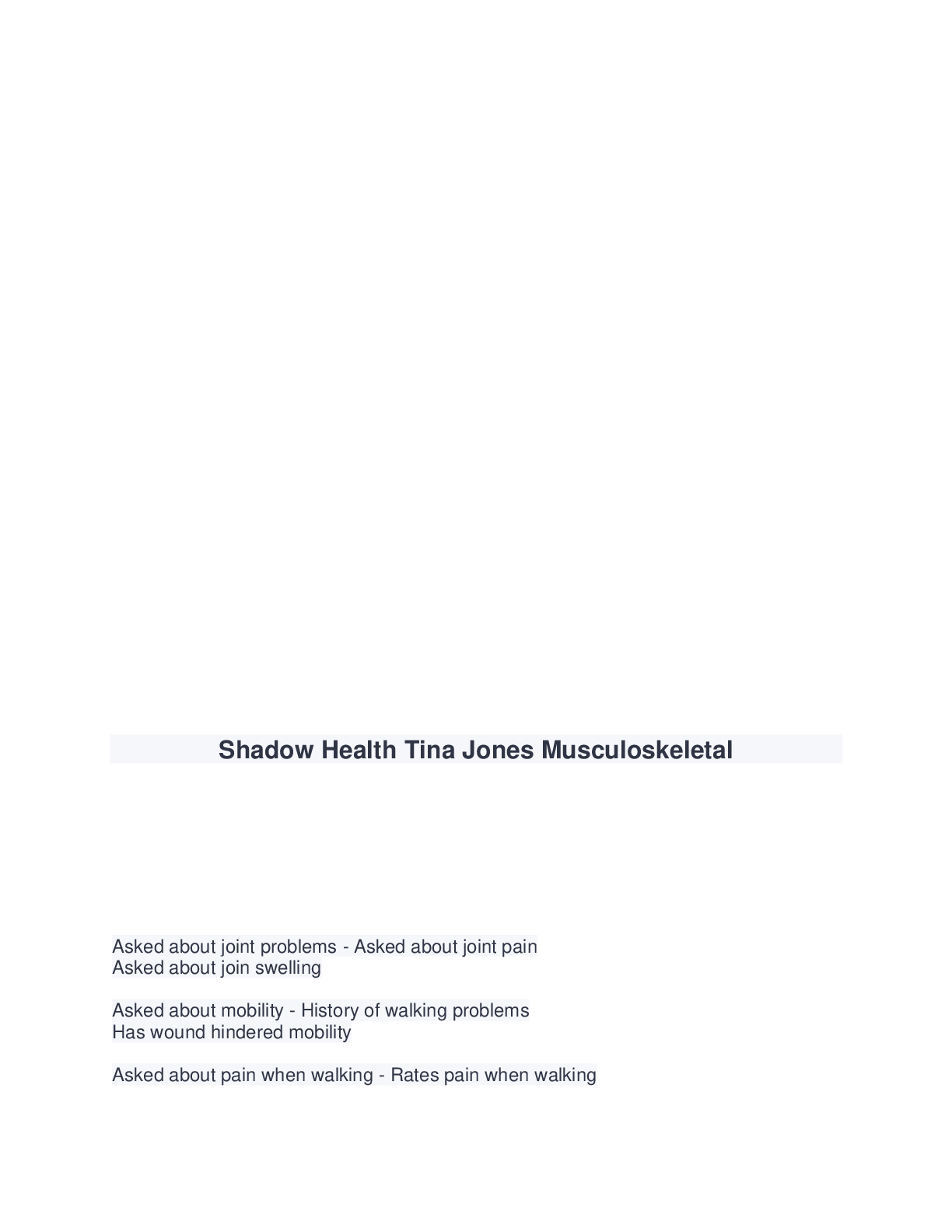 Shadow Health Tina Jones Musculoskeletal 2022/2023