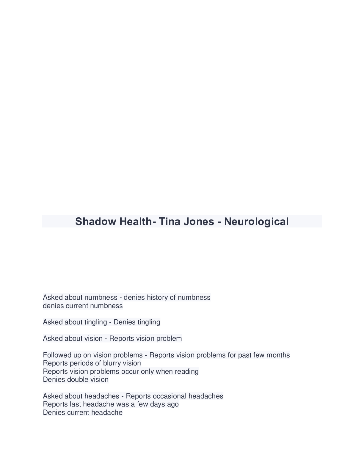 Shadow Health- Tina Jones - Neurological 2022/2023/Shadow Health- Tina Jones - Neurological 2022/2023