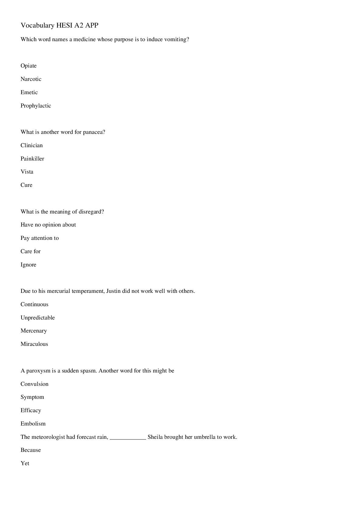 English> EXAM > HESI A2 Vocabulary 1 A+ Grade (All)