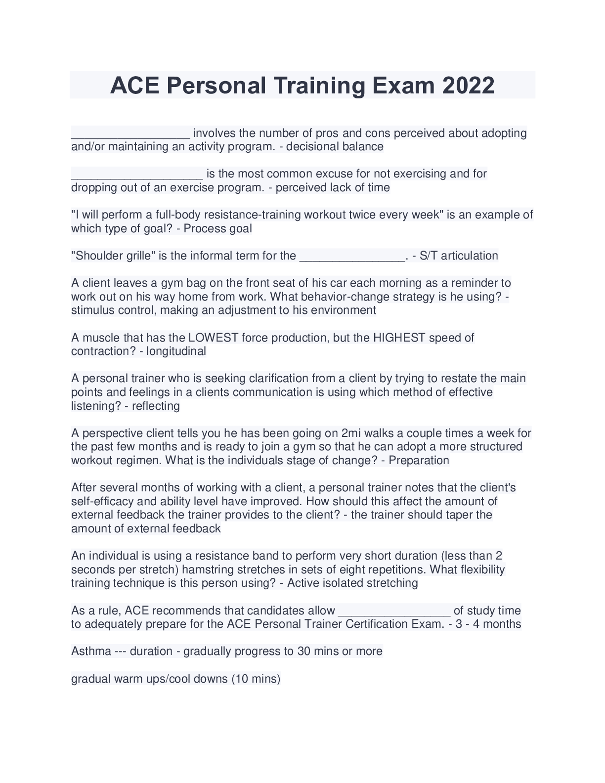 Ace Personal Trainer Practice Test 1 (Latest 2022/2023) Download to Ace your Exam