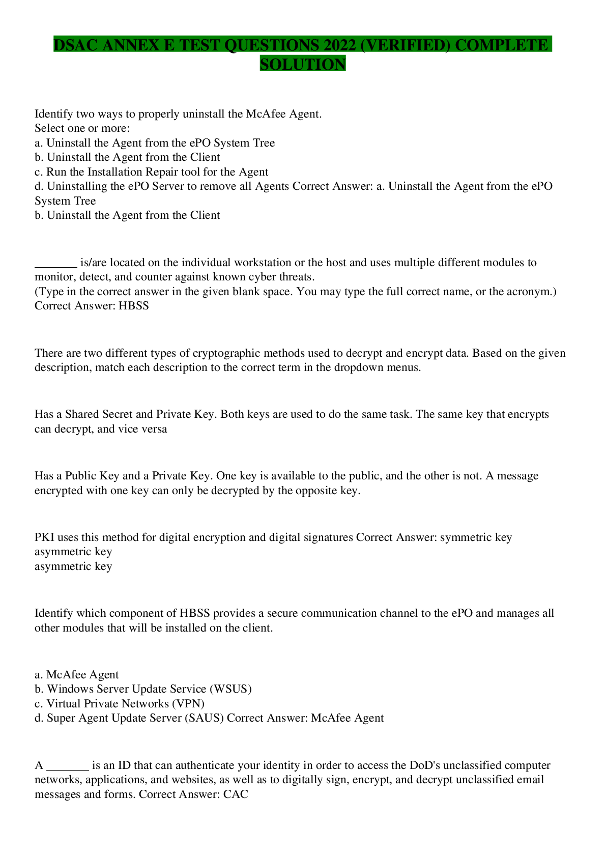 Computer Science> EXAM > DSAC ANNEX E TEST QUESTIONS 2022 (VERIFIED) COMPLETE SOLUTION (All)