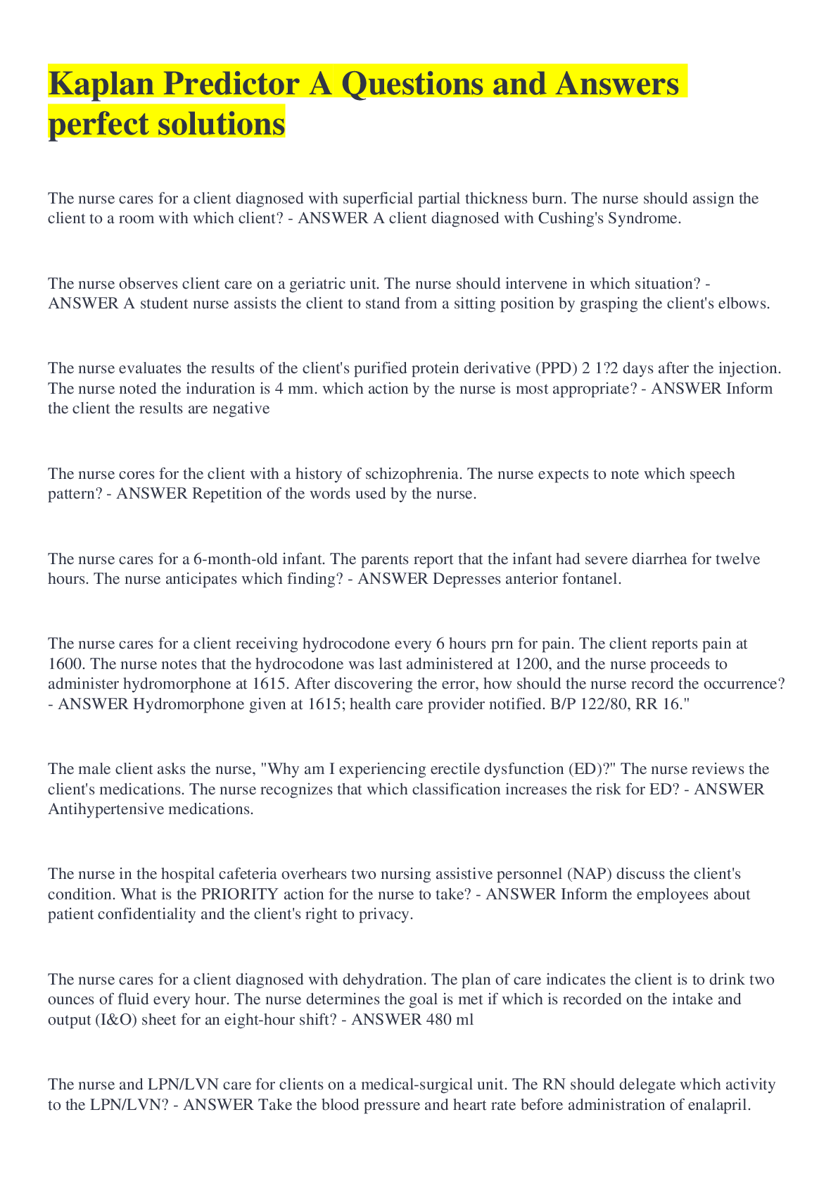 *NURSING> QUESTIONS & ANSWERS > Kaplan Predictor A Questions and Answers perfect solutions (All)