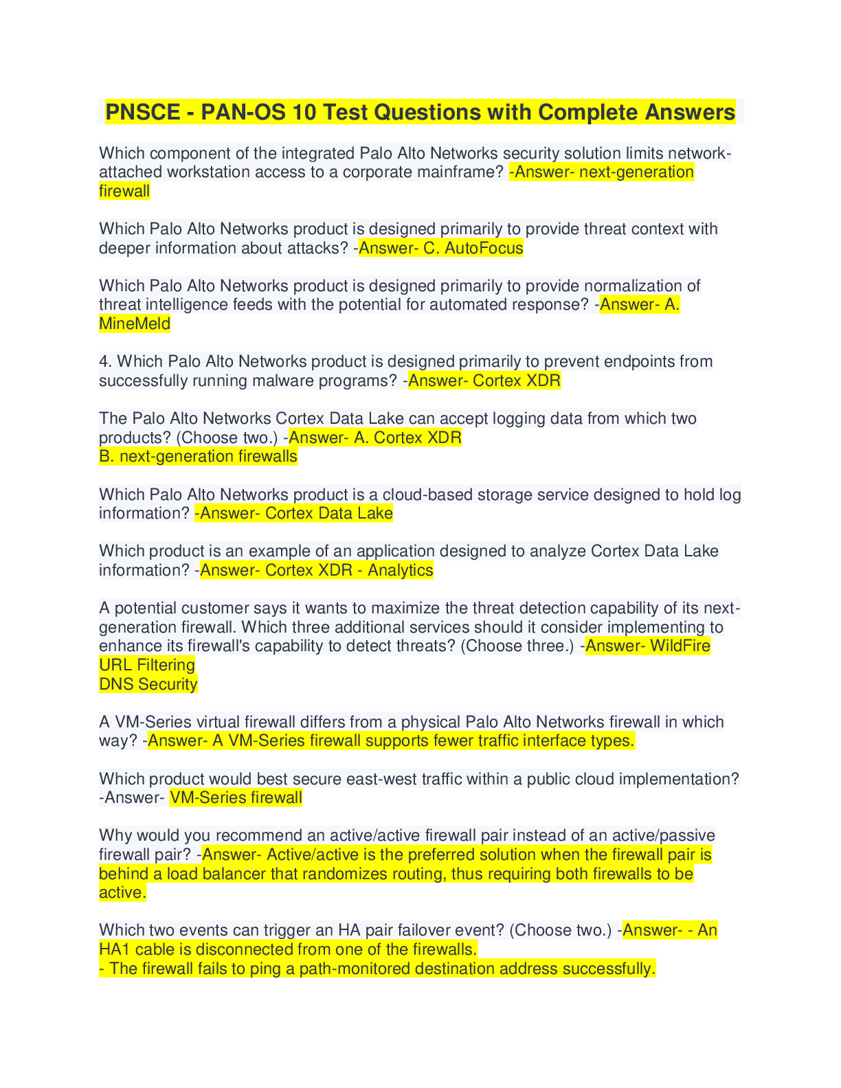 Computer Networking> QUESTIONS & ANSWERS > PNSCE - PAN-OS 10 Test Questions with Complete Answers (All)