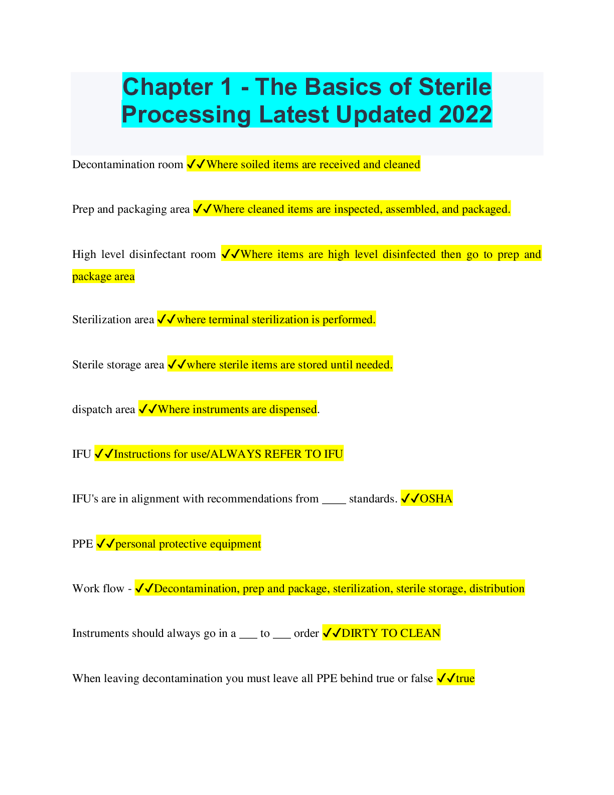 Health Care> EXAM > Chapter 1 - The Basics of Sterile Processing Latest Updated 2022 (All)