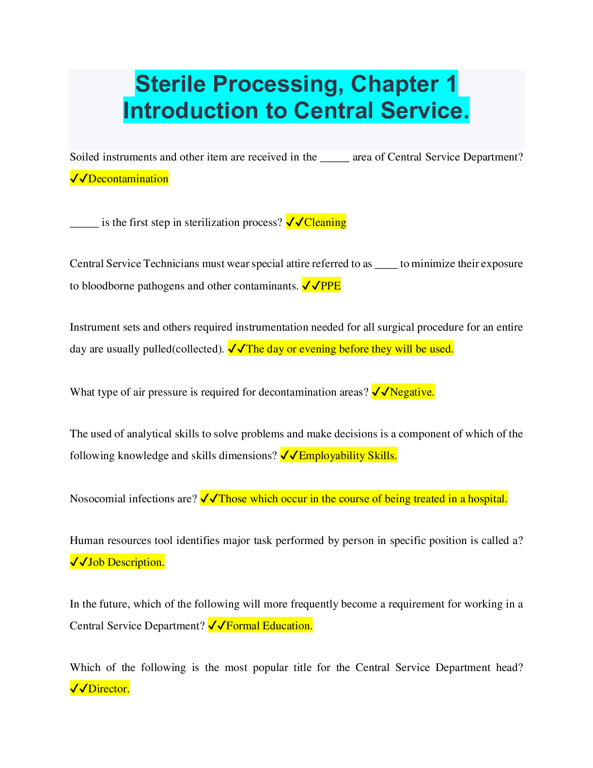 Medical Studies> EXAM > Sterile Processing Questions and Answers Graded A+ (All)