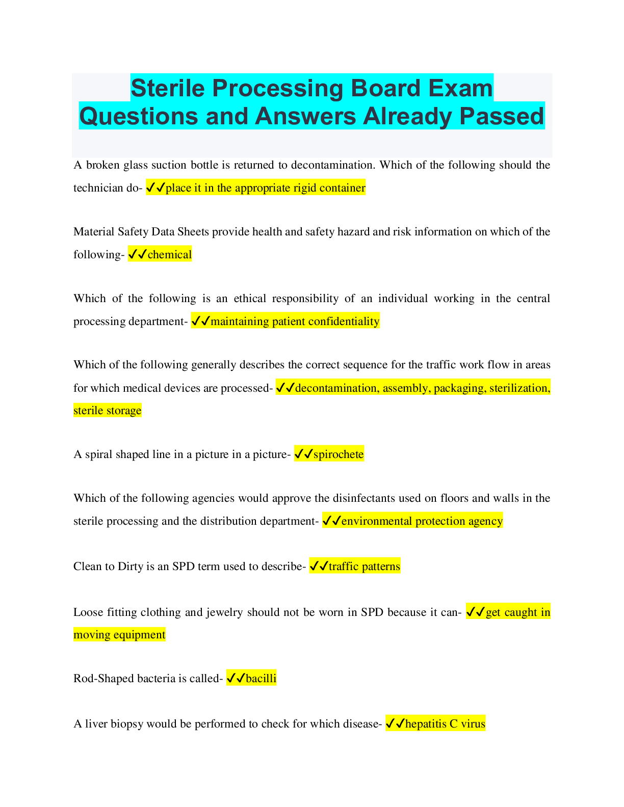 Biology> EXAM > Sterile Processing Questions and Answers Already Passed (All)