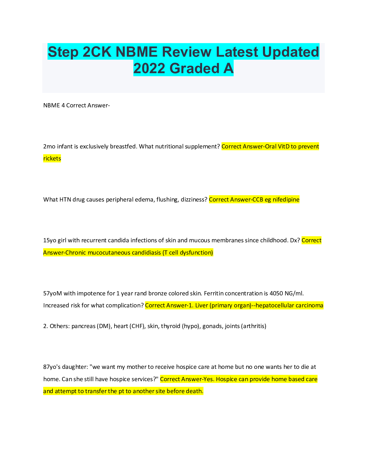 Health Care> EXAM > NBME - NEW TESTS LATEST UPDATED 2022 QUESTIONS AND ANSWERS (All)
