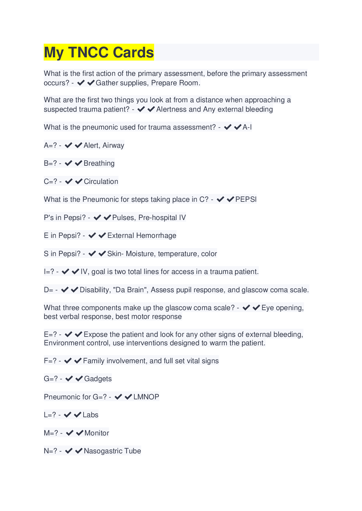 Health Care> EXAM > My TNCC Cards | all answers are 100% correct (All)