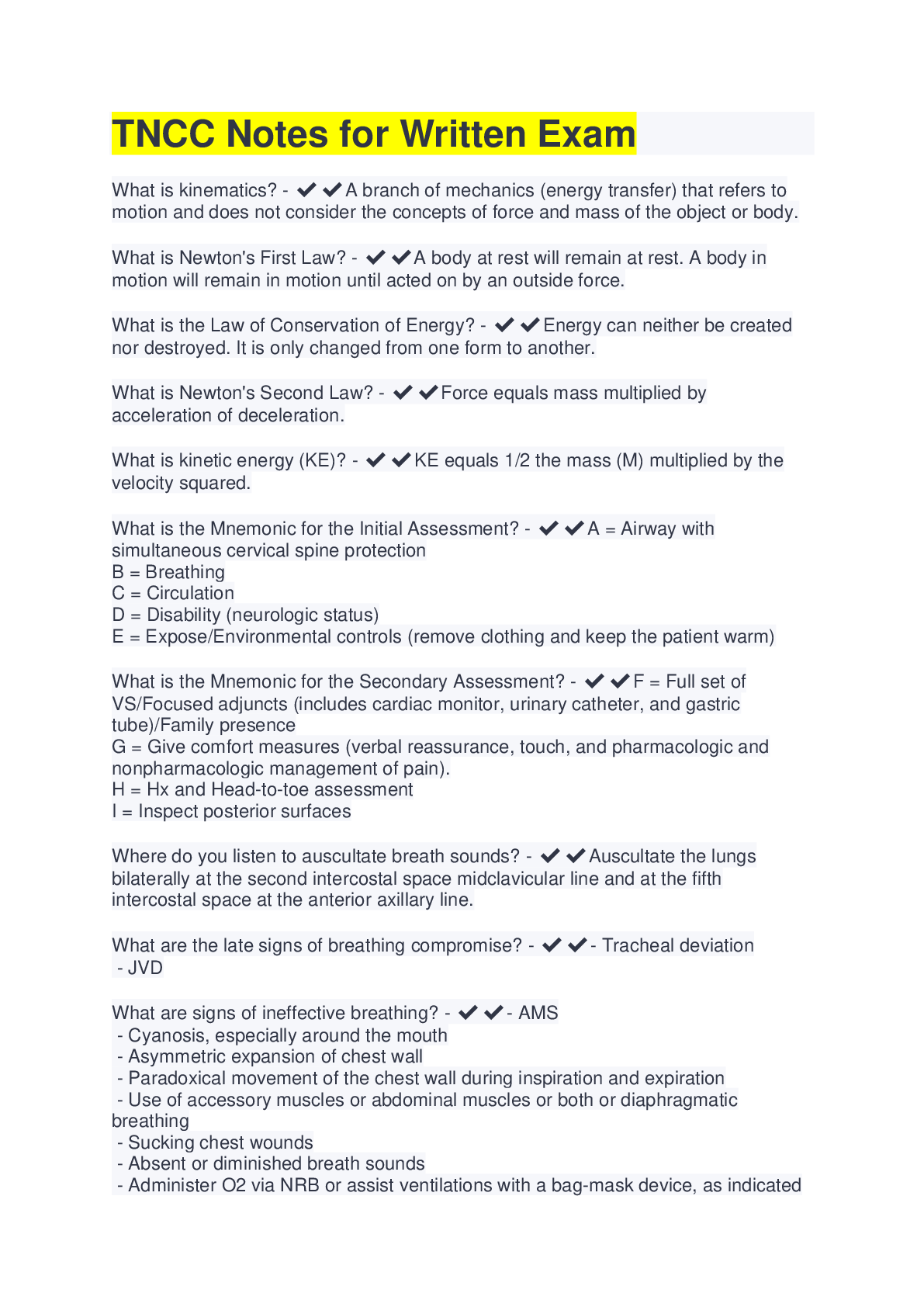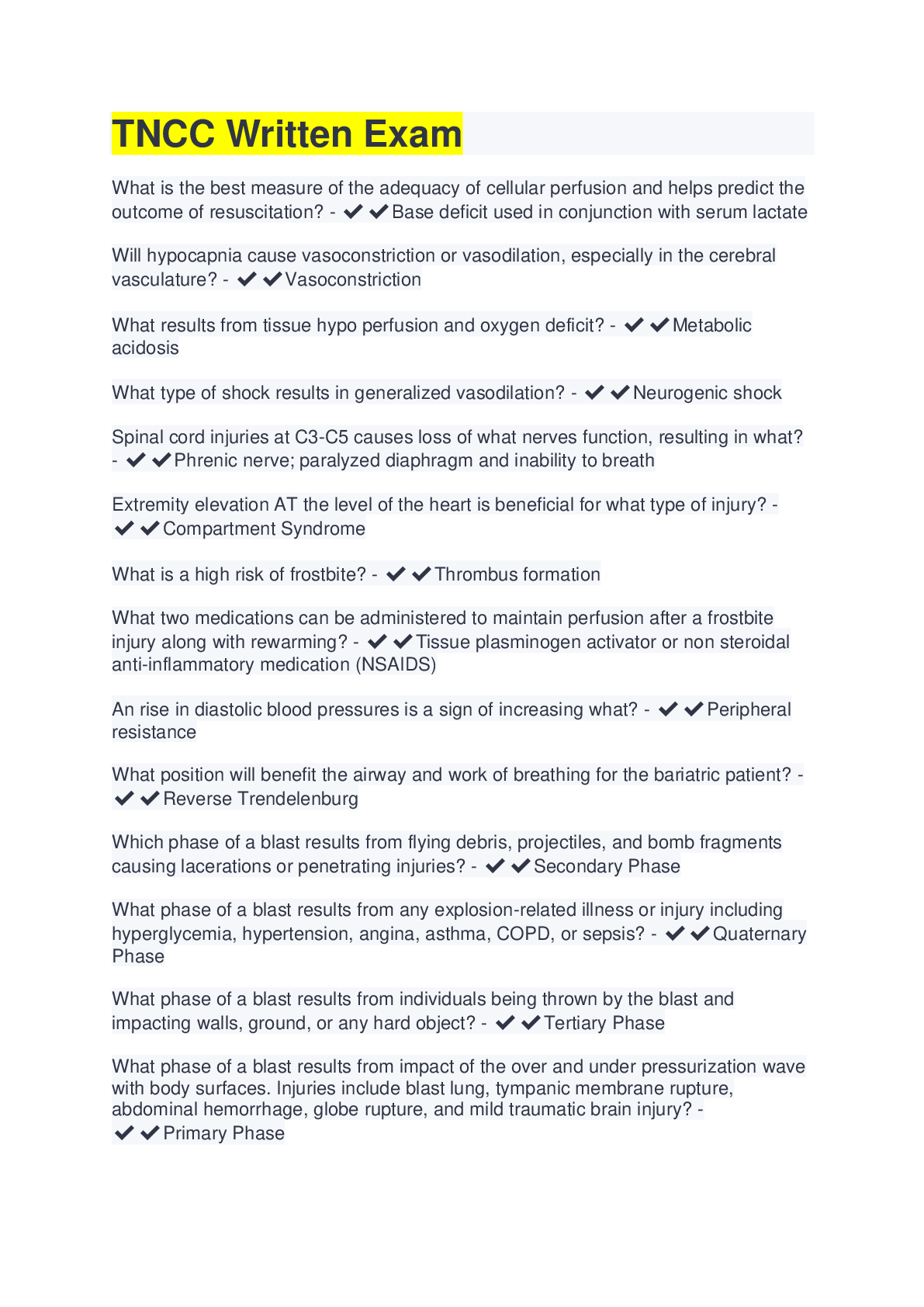 Health Care> EXAM > TNCC Notes for Written Exam | with 100% correct answers (All)