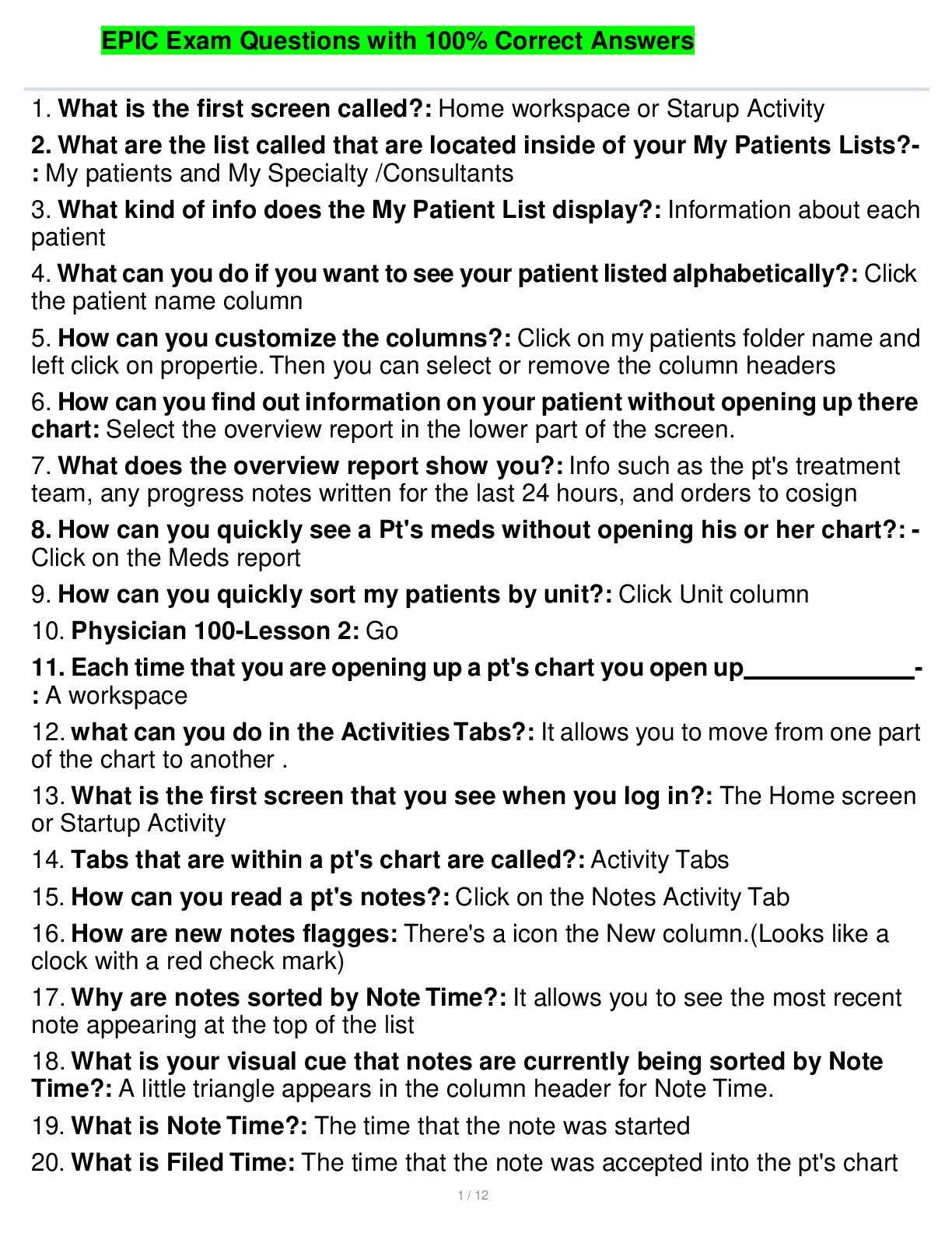*NURSING> QUESTIONS & ANSWERS > EPIC Exam Questions with 100% Correct Answers (All)