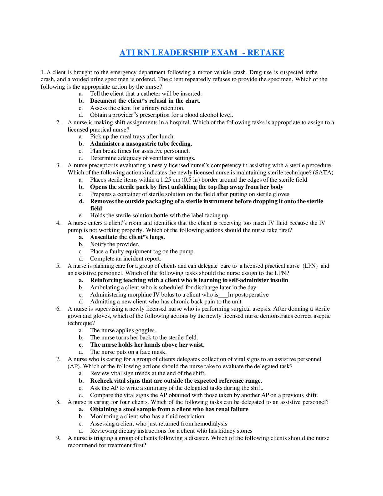 ATI RN LEADERSHIP PROCTORED EXAM 2019 VERSION 1,2,&, 3/////ATI RN LEADERSHIP PROCTORED EXAM 2019 VERSION 1,2,&, 3////ATI RN LEADERSHIP PROCTORED EXAM 2019 VERSION 1,2,&, 3