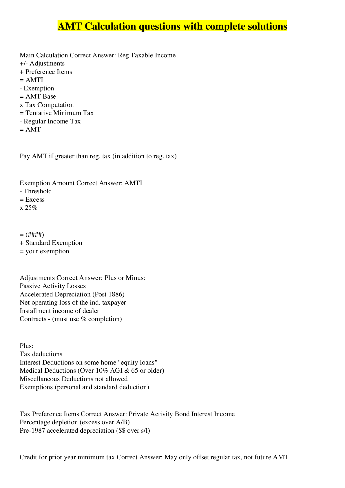 Health Care> EXAM > AMT Calculation questions with complete solutions (All)