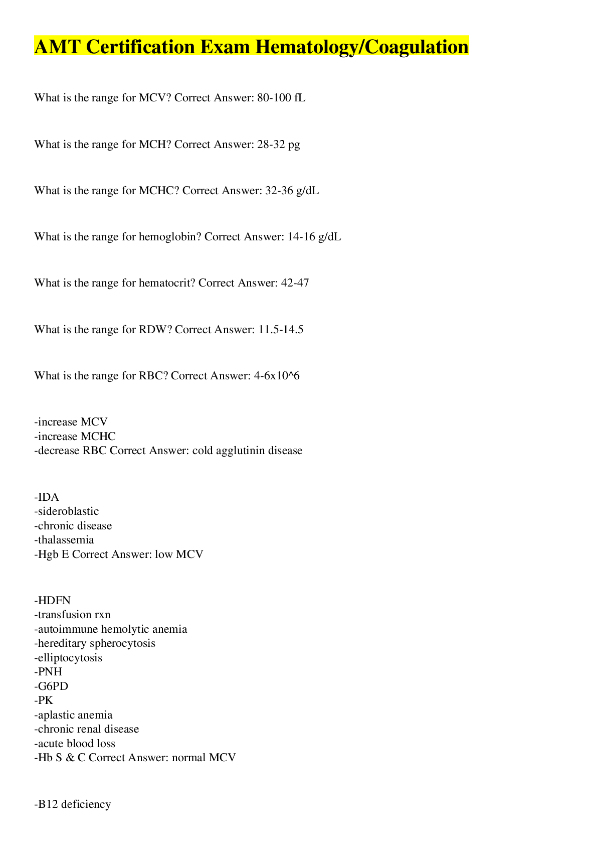 Health Care> EXAM > AMT Certification Exam Hematology/Coagulation (All)