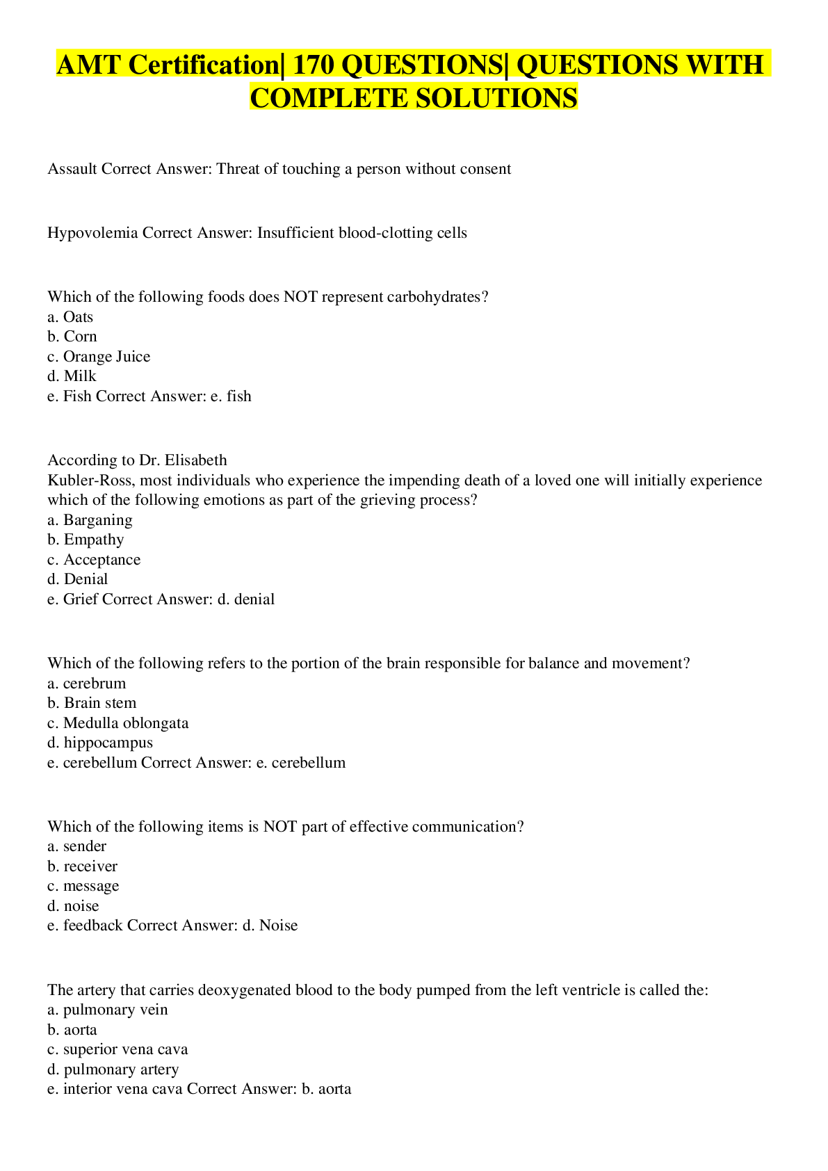 Health Care> EXAM > AMT Certification| 170 QUESTIONS| QUESTIONS WITH COMPLETE SOLUTIONS (All)
