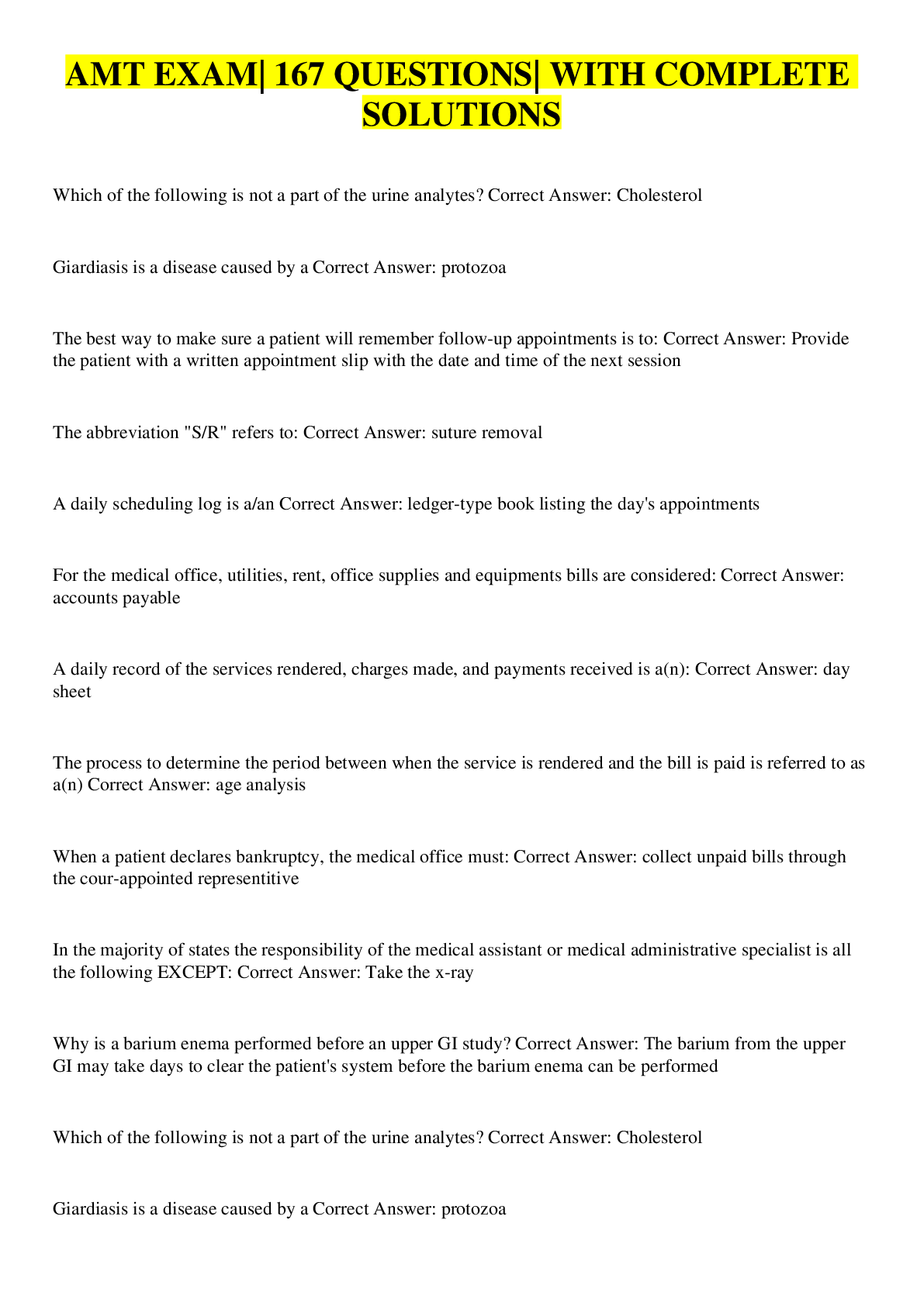 Health Care> EXAM > AMT EXAM| 167 QUESTIONS| WITH COMPLETE SOLUTIONS (All)