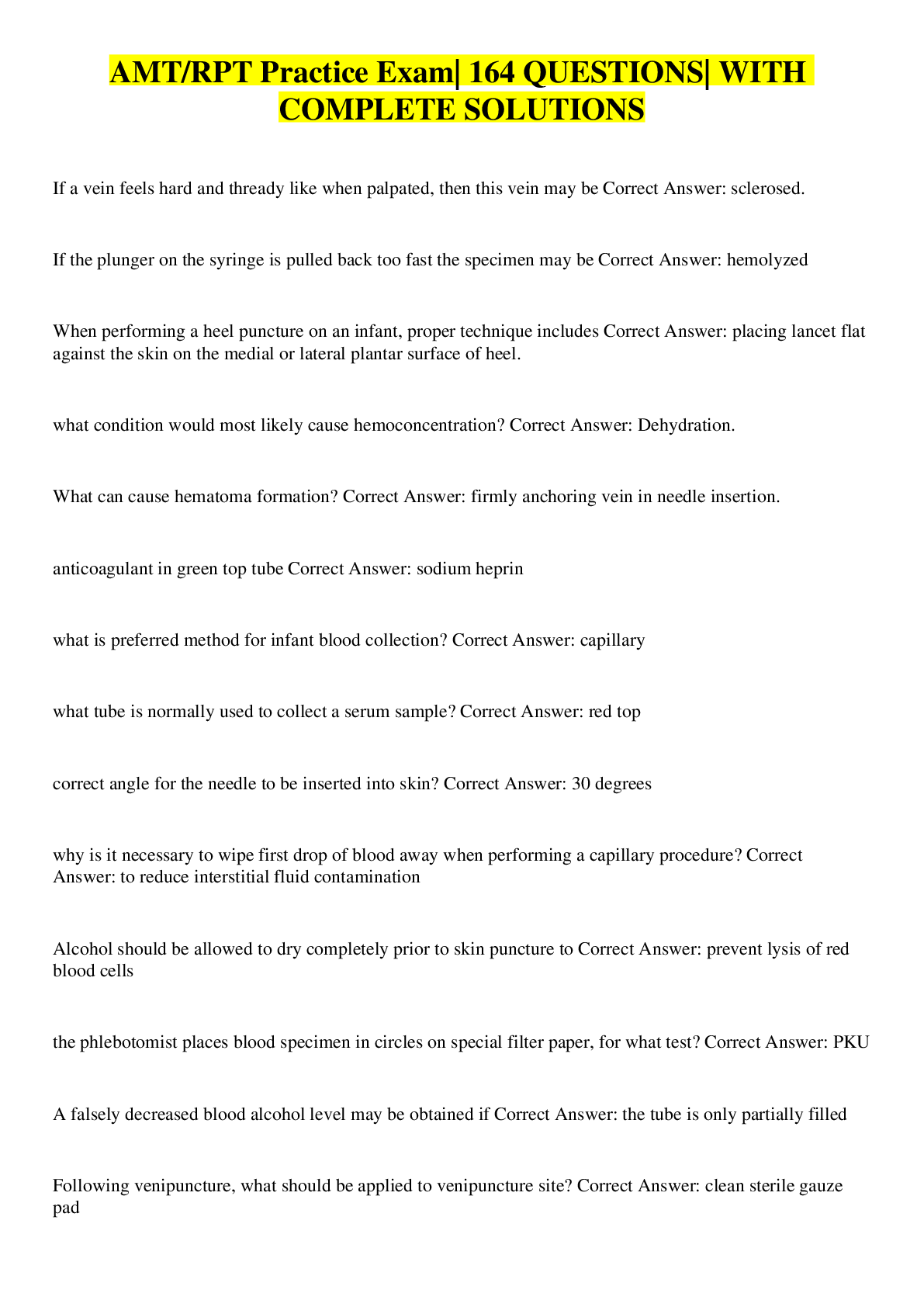Health Care> EXAM > AMT/RPT Practice Exam| 164 QUESTIONS| WITH COMPLETE SOLUTIONS (All)