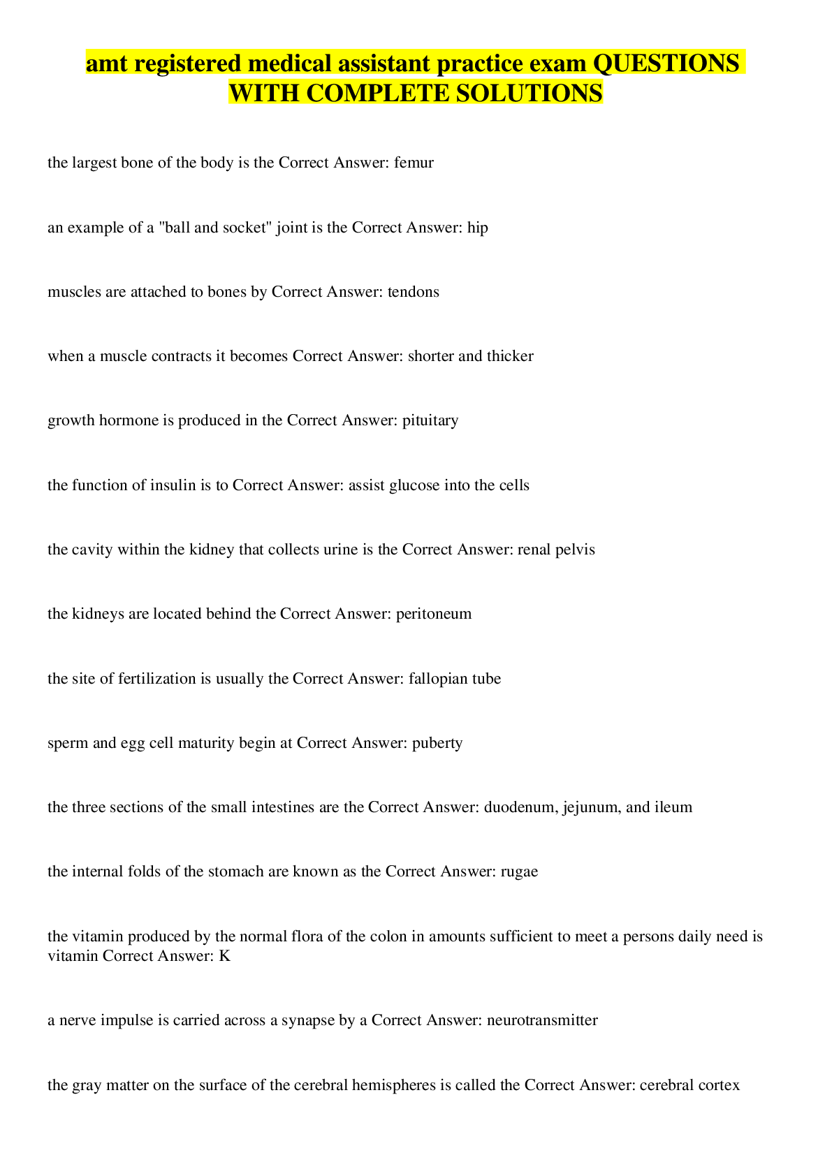 Health Care> EXAM > amt registered medical assistant practice exam QUESTIONS WITH COMPLETE SOLUTIONS (All)