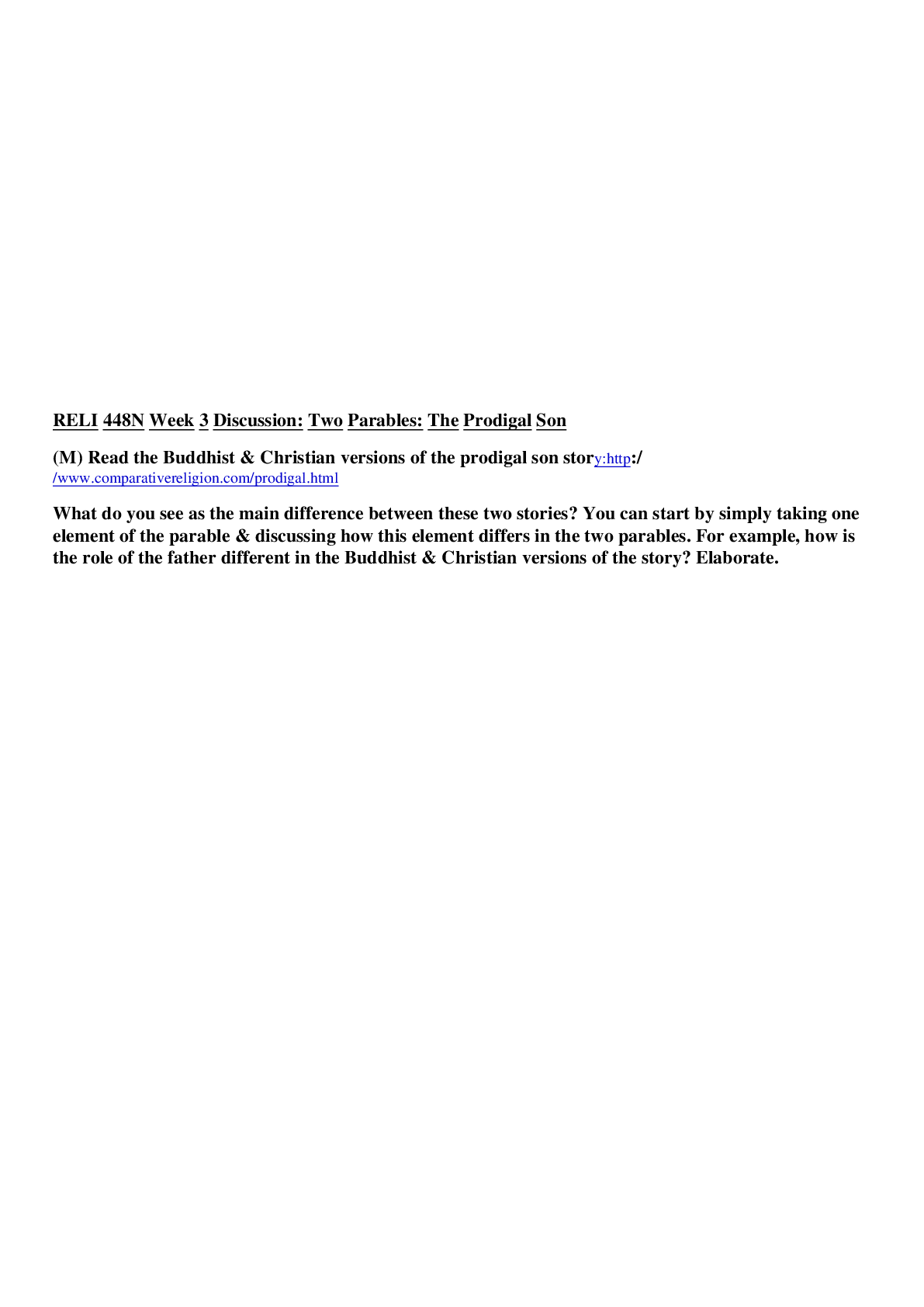 Religious Studies> DISCUSSION POST > RELI 448N Week 3 - Discussion 2, Two Parables The Prodigal Son (All)